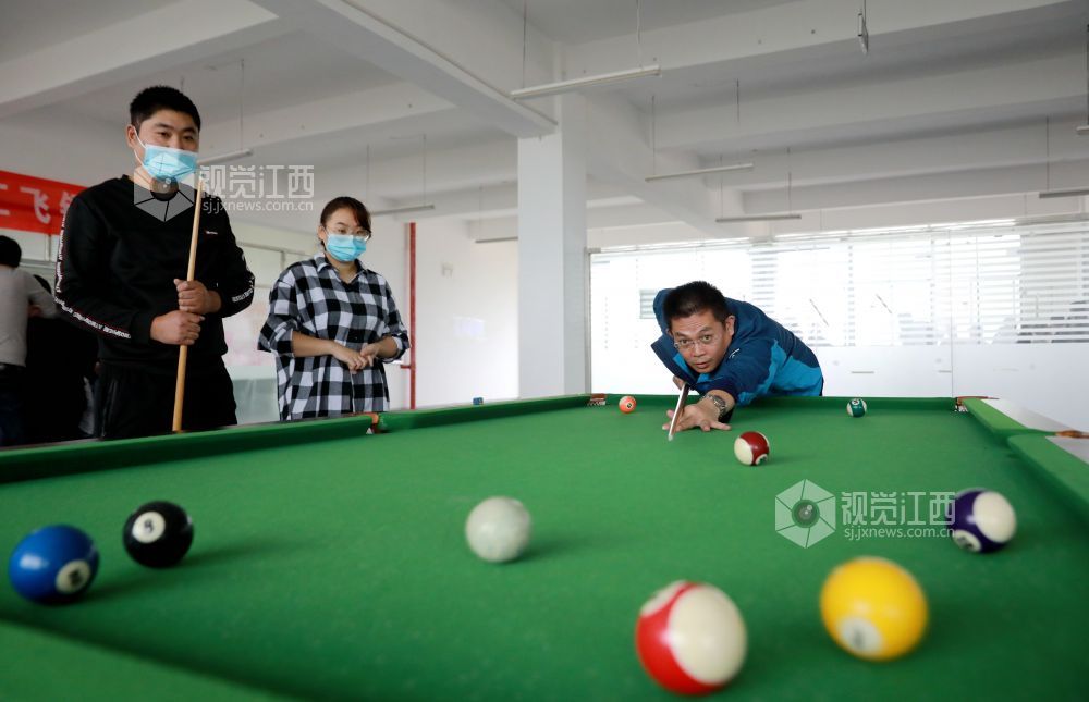 2020年10月16日,江西省吉水县工业园区职工之家一片欢声笑语,飞镖、兵乓球、羽毛球、台球等一场场热闹非凡的比赛轮番上演。