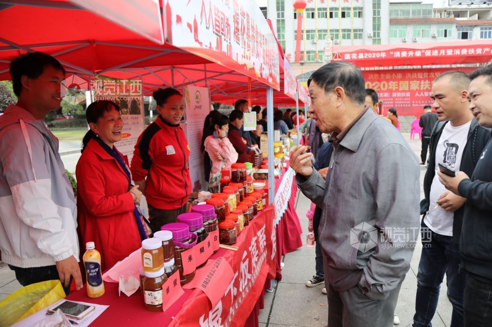 2020年10月17日是国家扶贫日,江西省莲花县开展消费扶贫产品展销活动。来自该县乡、镇的各种土、特、农副产品云集莲花一支枪广场消费扶贫摊位供消费者选购。活动现场该县还表彰了10名最美扶贫人、10户最美脱贫家庭、10名优秀创业带头人。