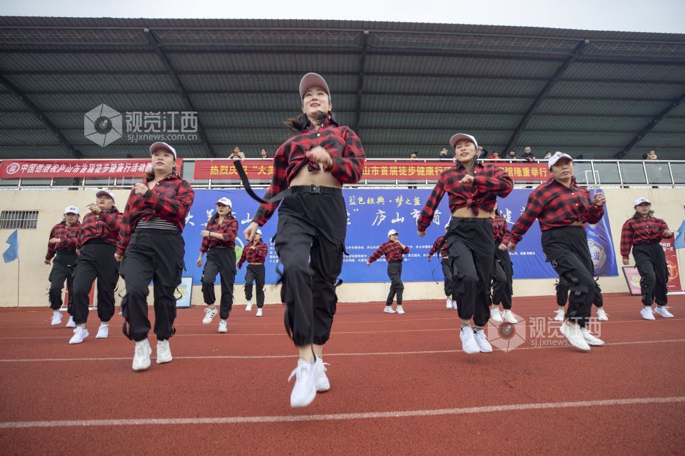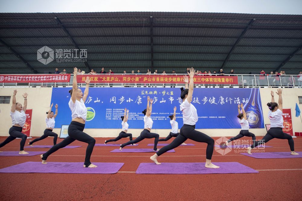 10月18日,江西省庐山市举行全民健身活动,来自各相关单位和户外运动团体的户外运动爱好者们聚集一堂展示健身操、瑜伽、街舞等运动项目并开展健步行活动。