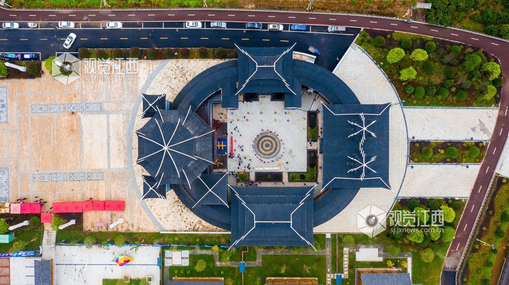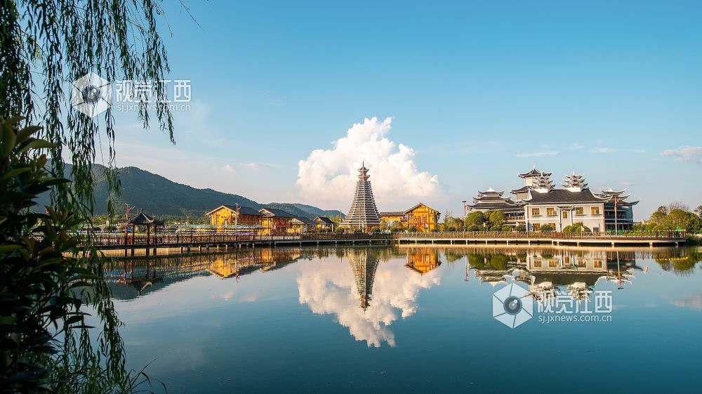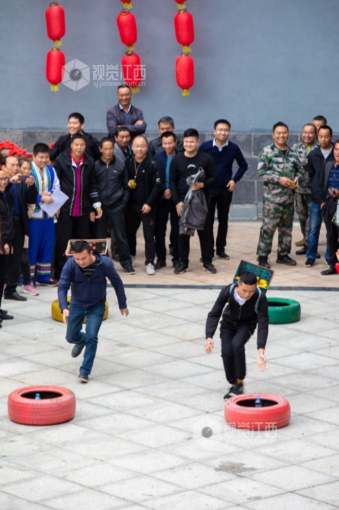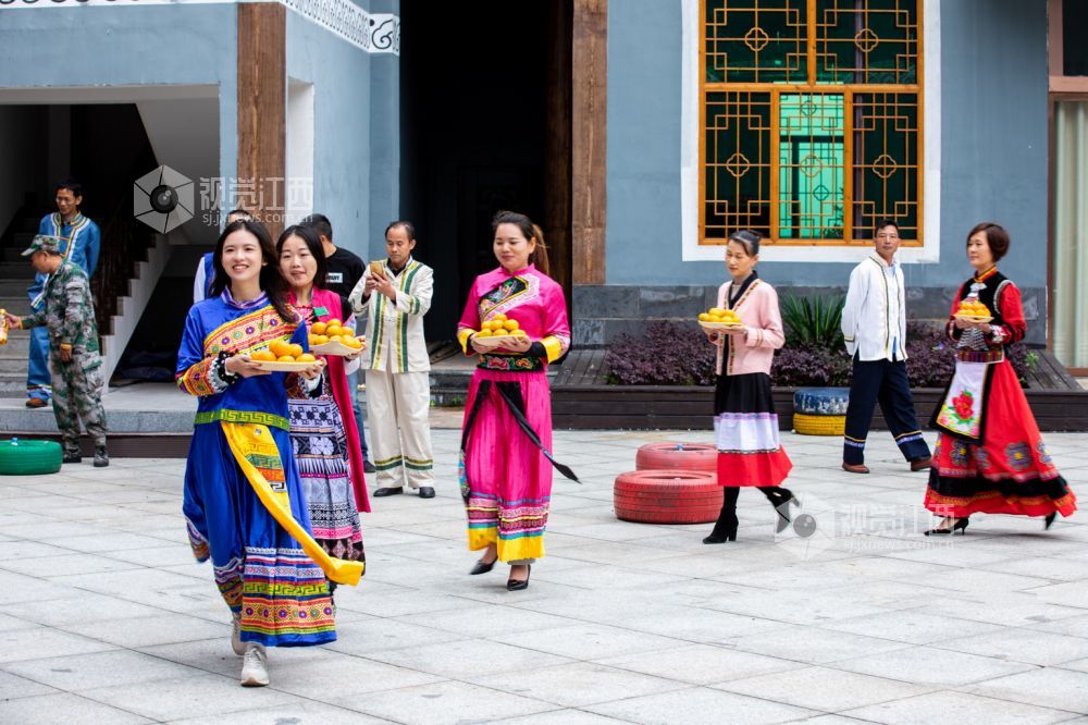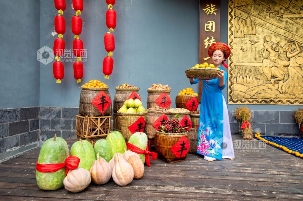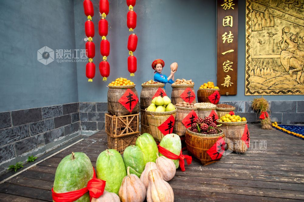 10月17日,在江西省吉安市峡江县金坪民族风情园内,由八个少数民族共同带来的节庆舞蹈正在上演。大家身穿各自民族的特色服装,在鼓楼内围成一个大圈,手拉手一起欢快的舞动。现场色彩艳丽,节庆氛围浓厚,不少游客也纷纷换上喜欢的民族服饰,一起加入到舞蹈的行列当中,和当地村民一起享受节庆的乐趣。