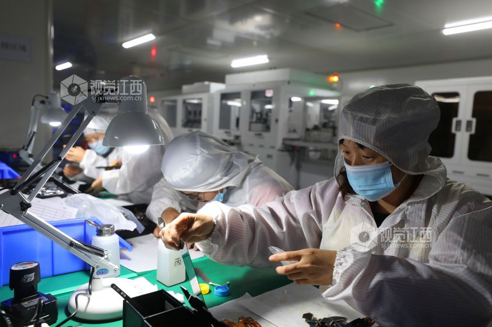 10月21日,位于江西省莲花县工业园的普凌科技无尘车间内,工人和技术人员正在生产和检测智能手机配件。该公司与华为、OPPO、VIVO等知名通讯企业建立了长期合作关系,预计全部达产后可日产6万块智能触控屏。近年来,莲花县大力实施新兴产业倍增工程,以空压机为主的装备制造业和电子信息两大产业集群初具规模,实现了县域经济高质量发展。