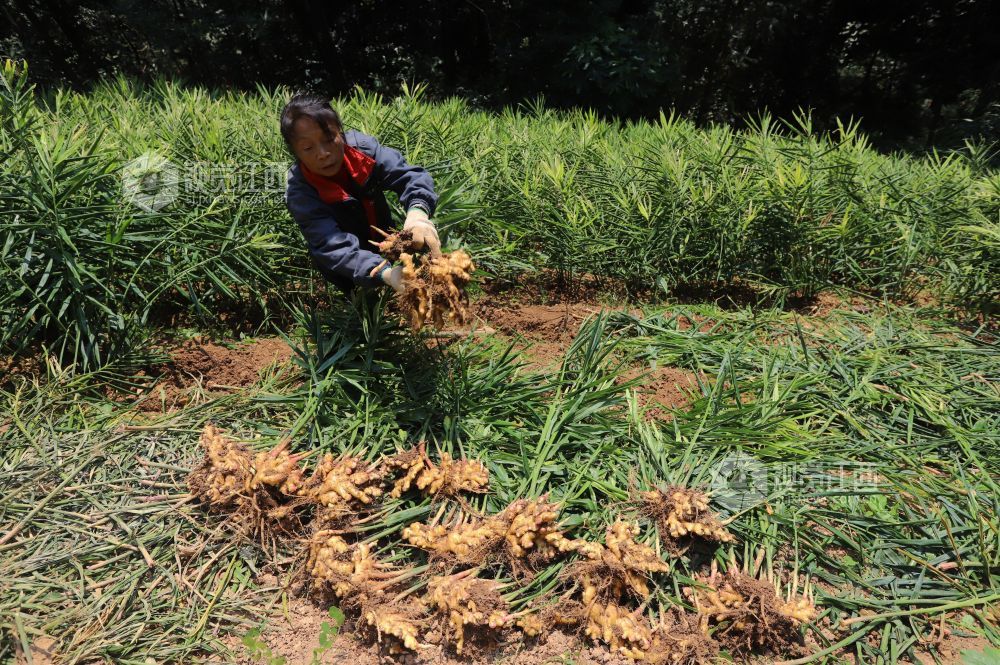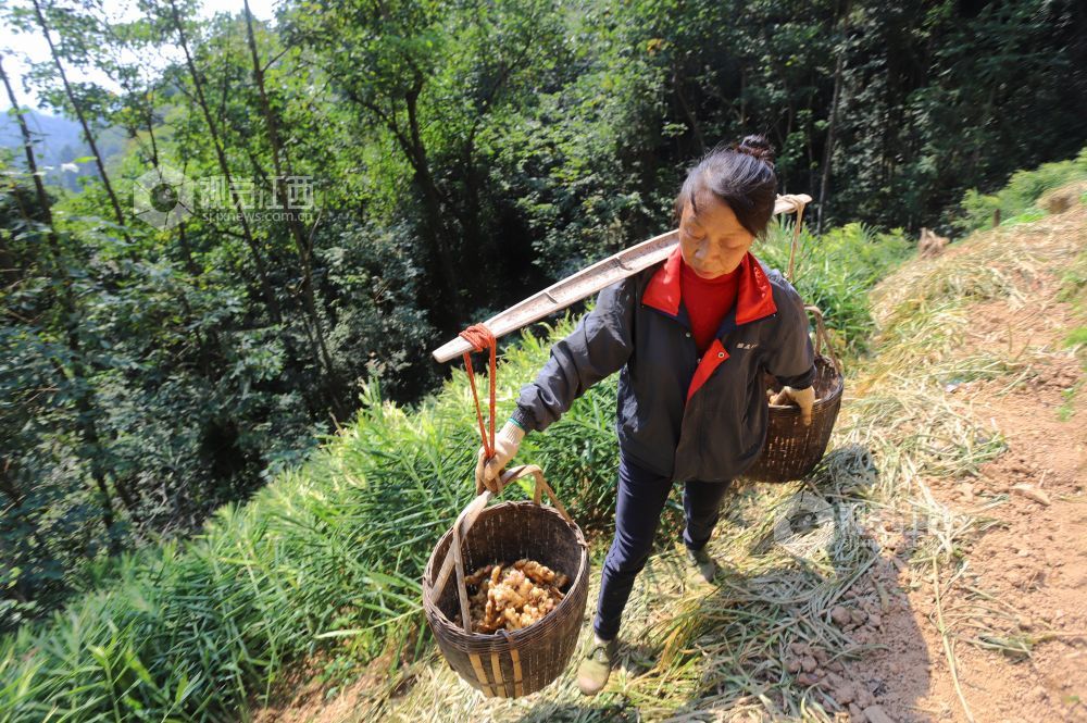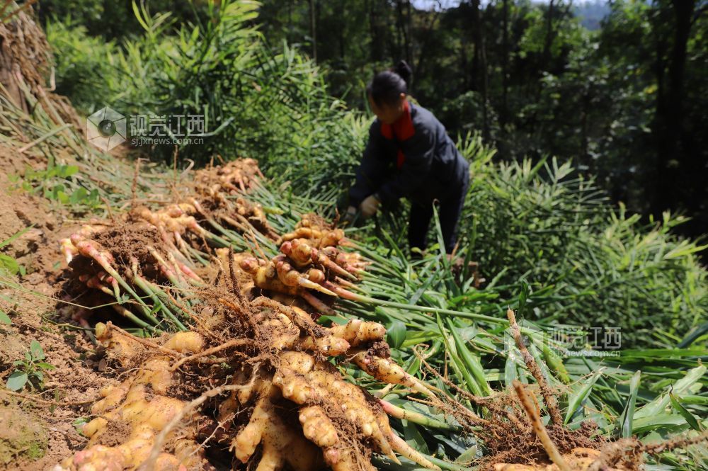 10月22日,江西省安福县彭坊乡坳云村村民周金莲在采挖生姜。坳云村地处山区,148户村民散居在海拔800余米山腰上,林下经济是该村村民的主要收入来源。