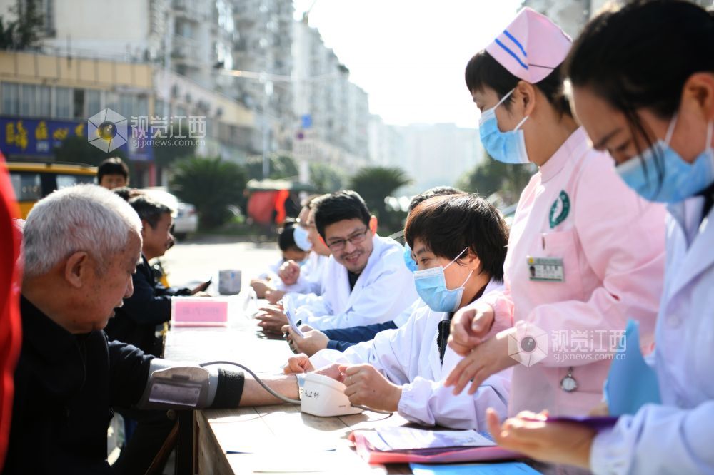 2020年10月24日,在江西省上饶市铅山县河口镇滨江花城小区,该县人民医院医生正为居民进行免费体检。今年,铅山县推行“党建+幸福小区”工作,健全社区“一委一居一站”管理模式,创新了社区治理新模式、不断健全完善社区治理体系,提升社区治理水平,为群众提供精准化、精细化服务,社区居民的幸福感、安全感和获得感显著提升。