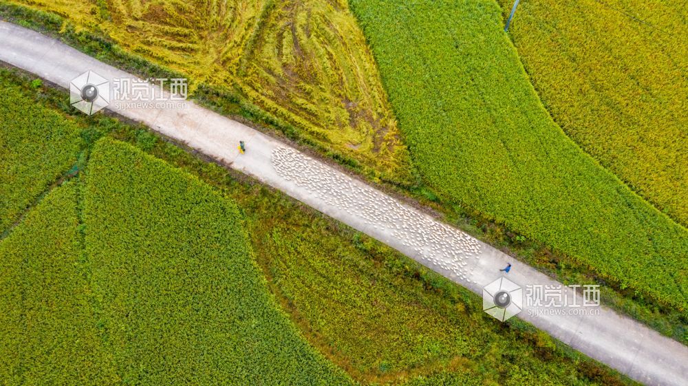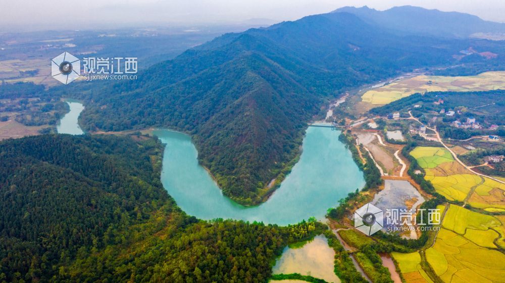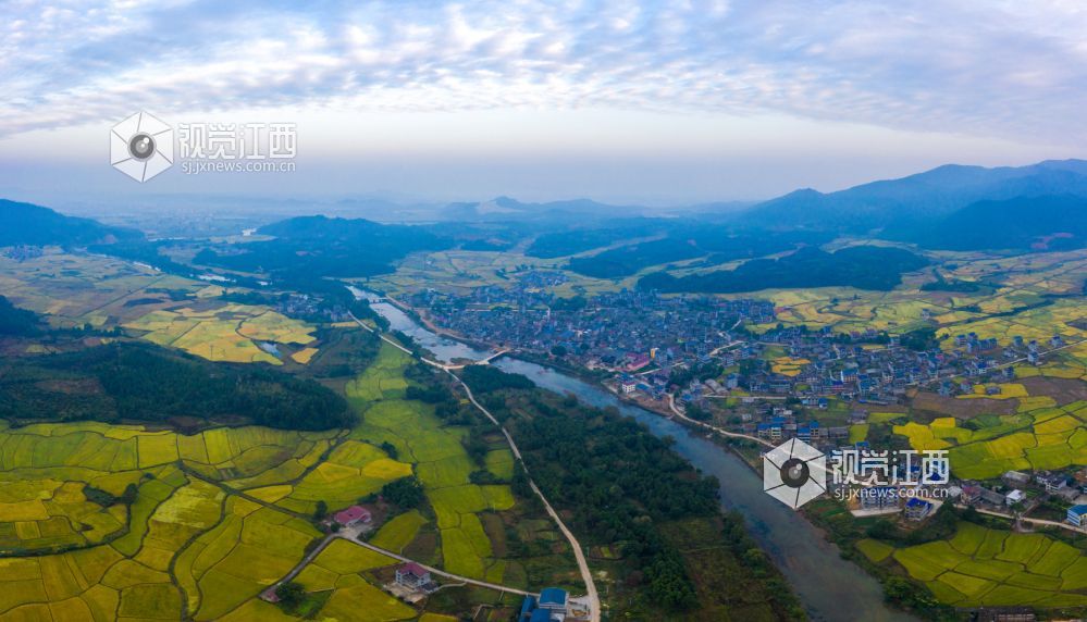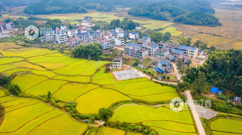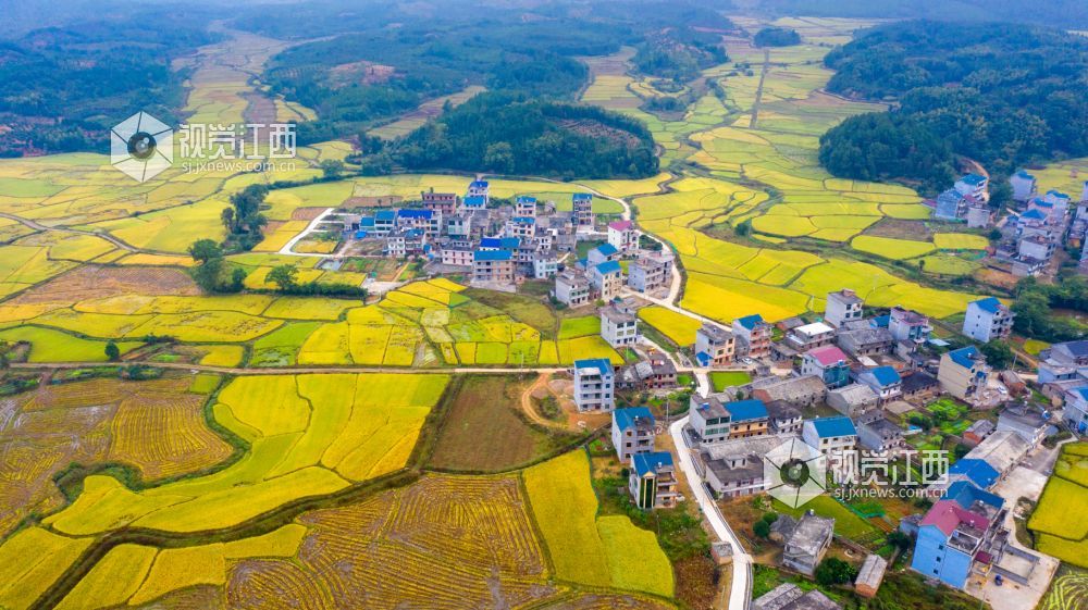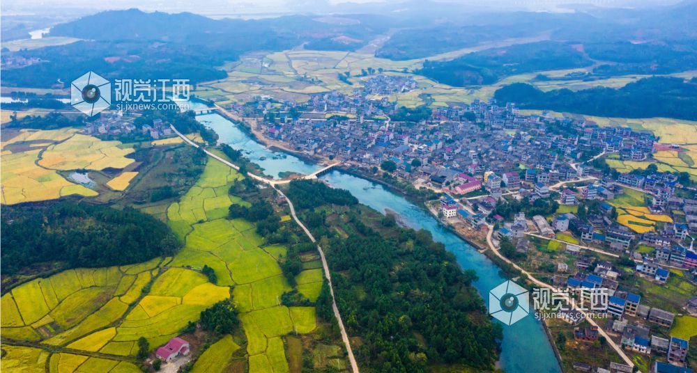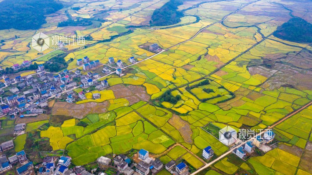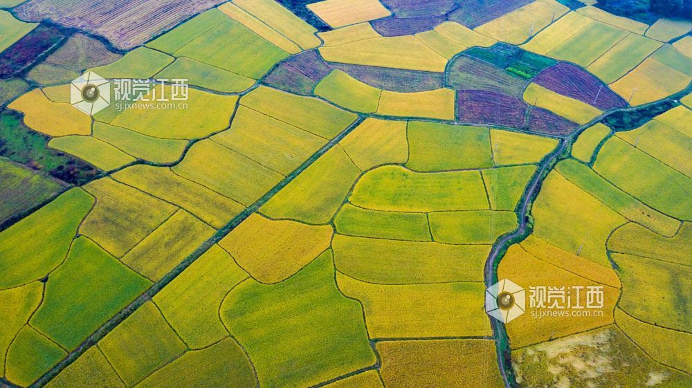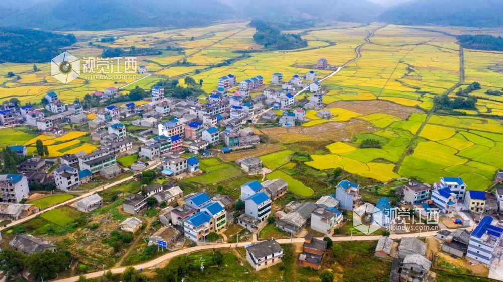 俯瞰江西峡江: 稻田一片金黄犹如天然“调色板”