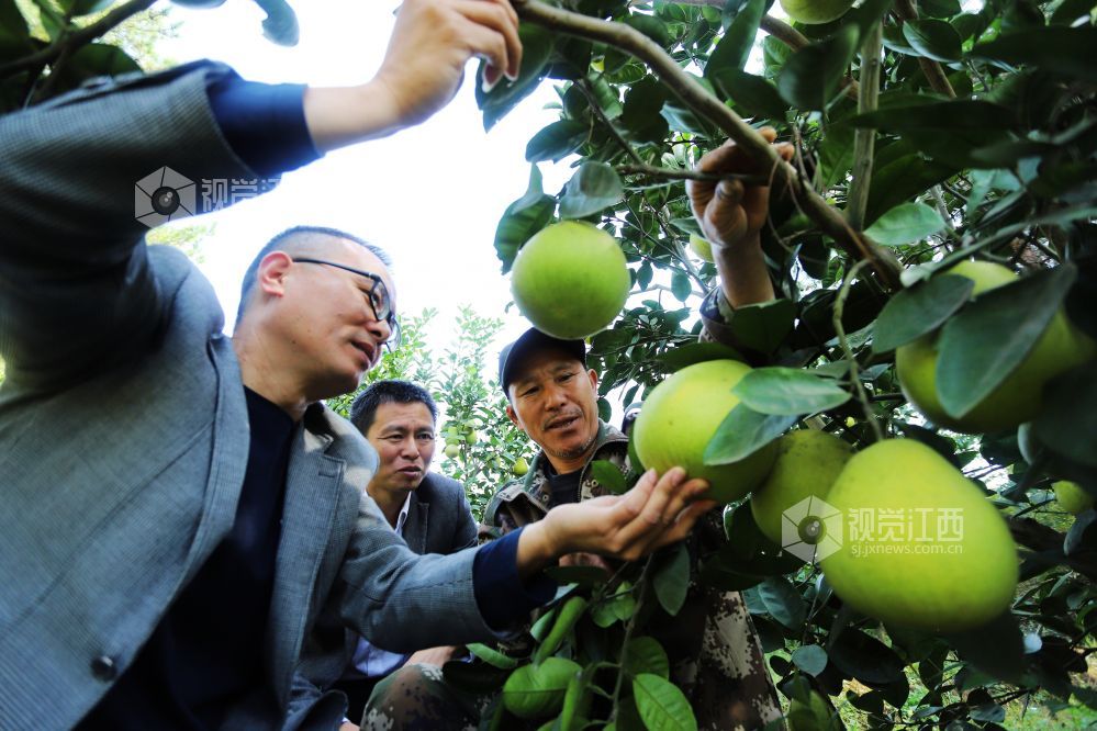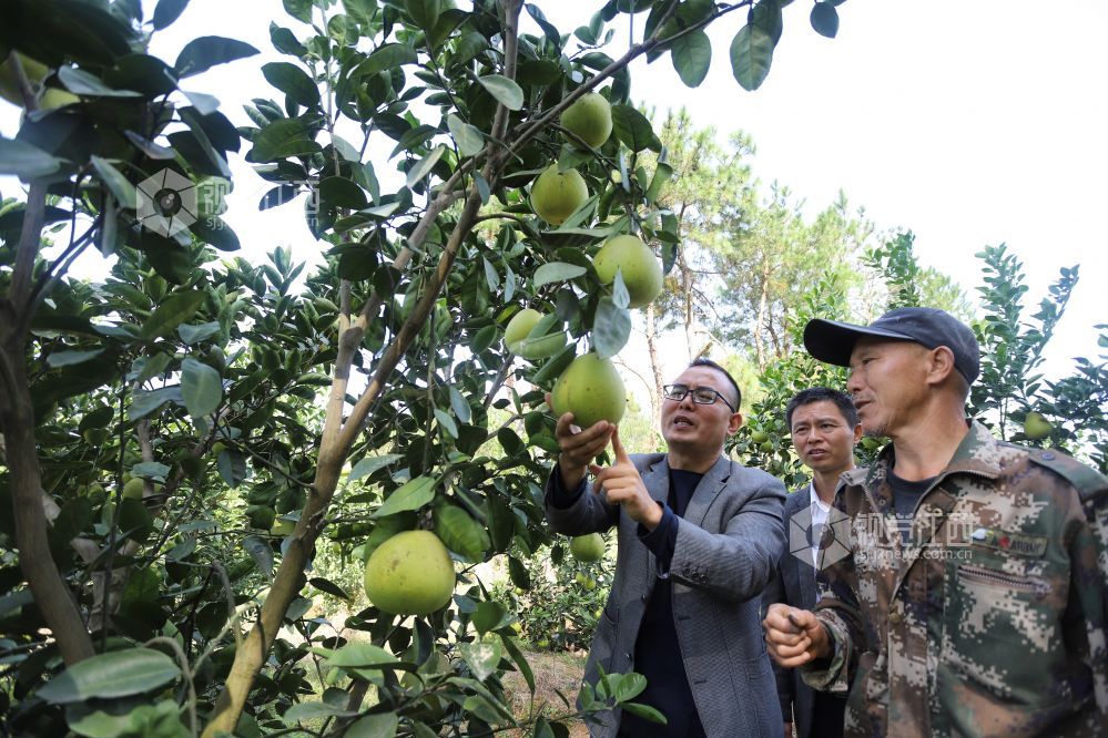 10月26日,江西省安福县平都镇果业技术员王小坛在指导农户抓好柚子冬季管理。安福县现有蜜柚7万余亩,目前正值柚子采摘销售高峰期,也是蜜柚冬管理的关键时期,该县果业局联手各乡镇组建了19个技术小分队深入各蜜柚种植大户、专业合作社和家庭农场,现场指导果农抓好蜜柚施肥、清园和抹梢等田间管理,为明年蜜柚丰产稳产打下基础。