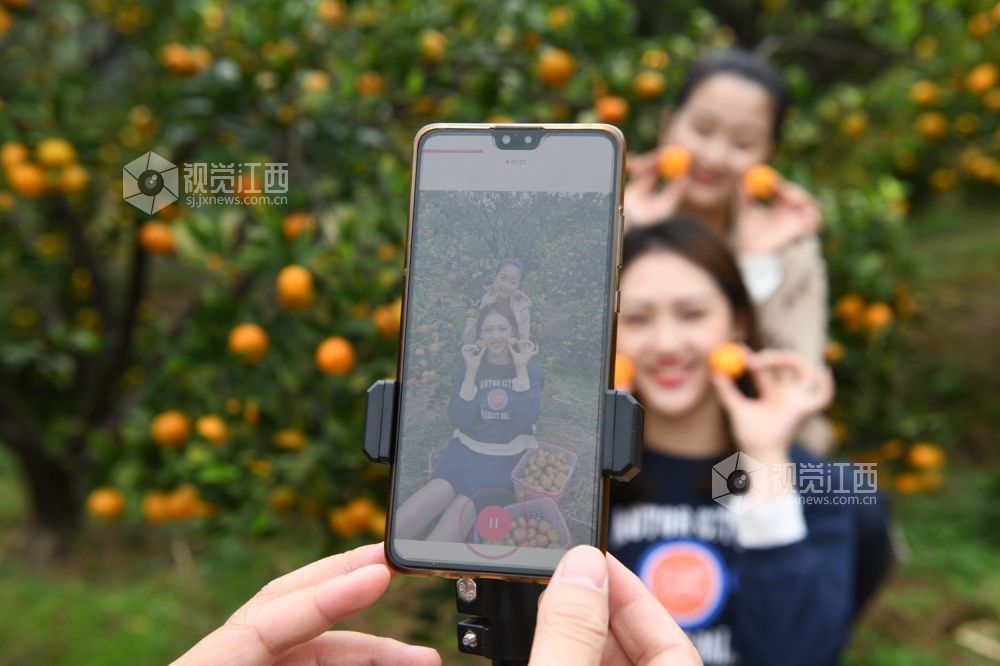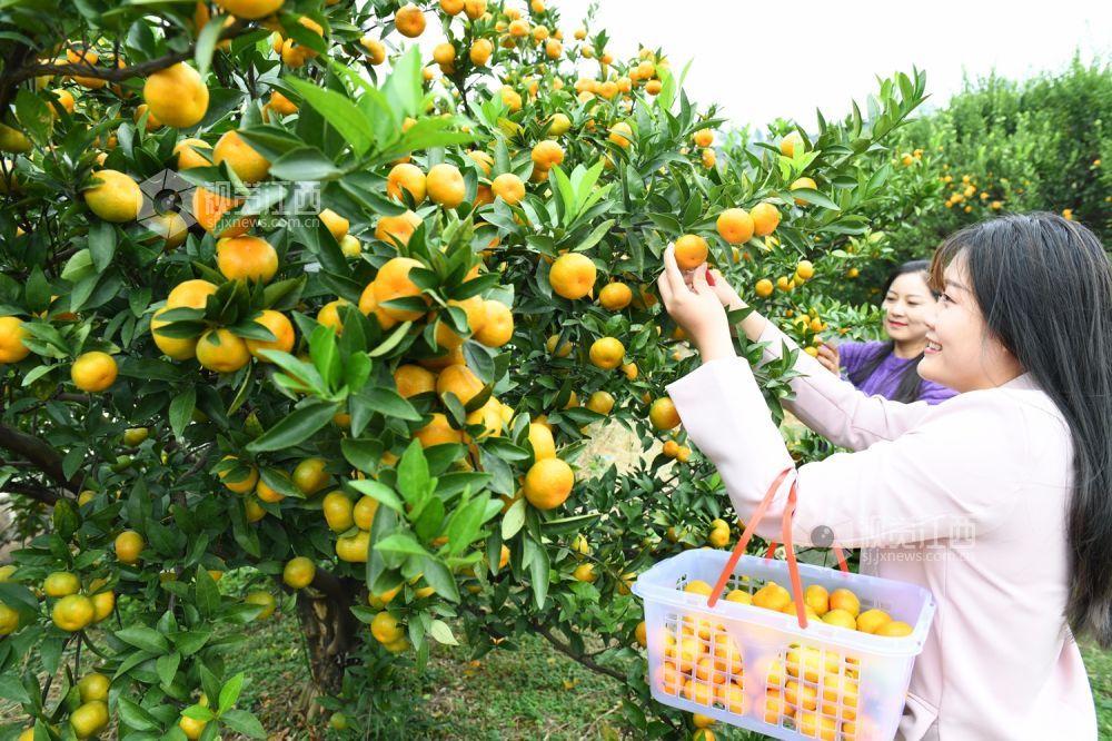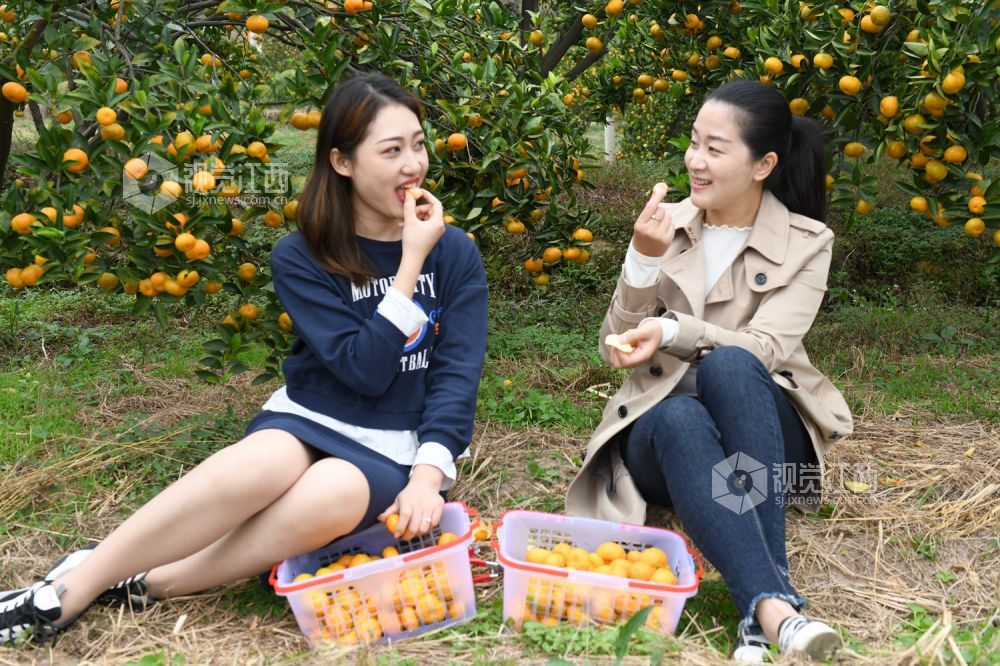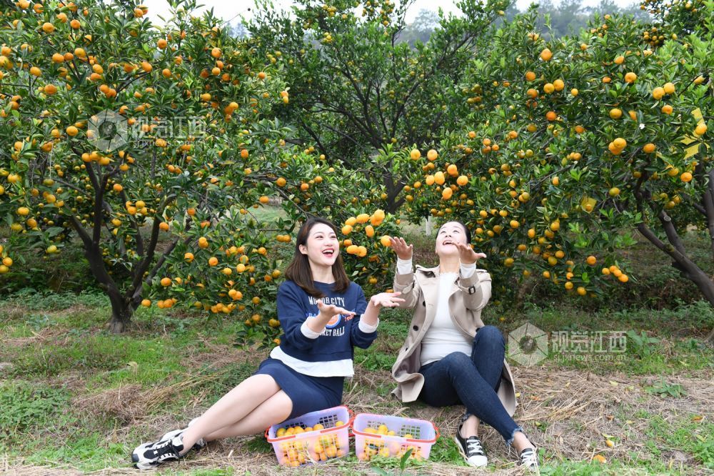 2020年10月29日,游客在南丰县市山镇包坊村“观必上乐园”的橘园里体验蜜橘采摘乐趣。