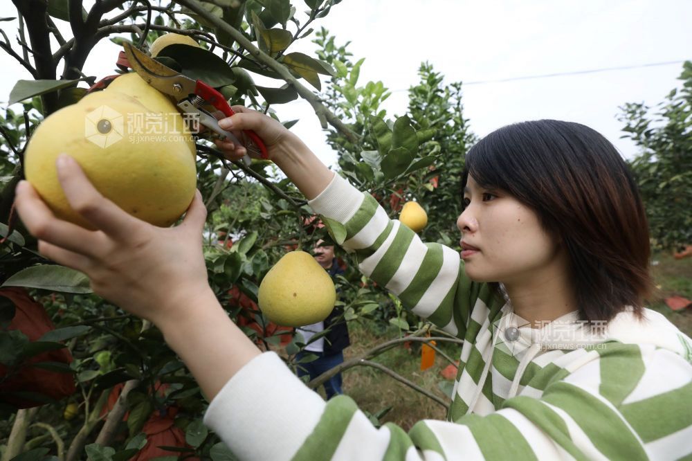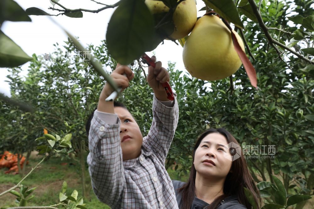 10月31日,在江西省莲花县升坊镇瑞和农场,市民在此采摘柚子,体验劳动的艰辛与快乐。
