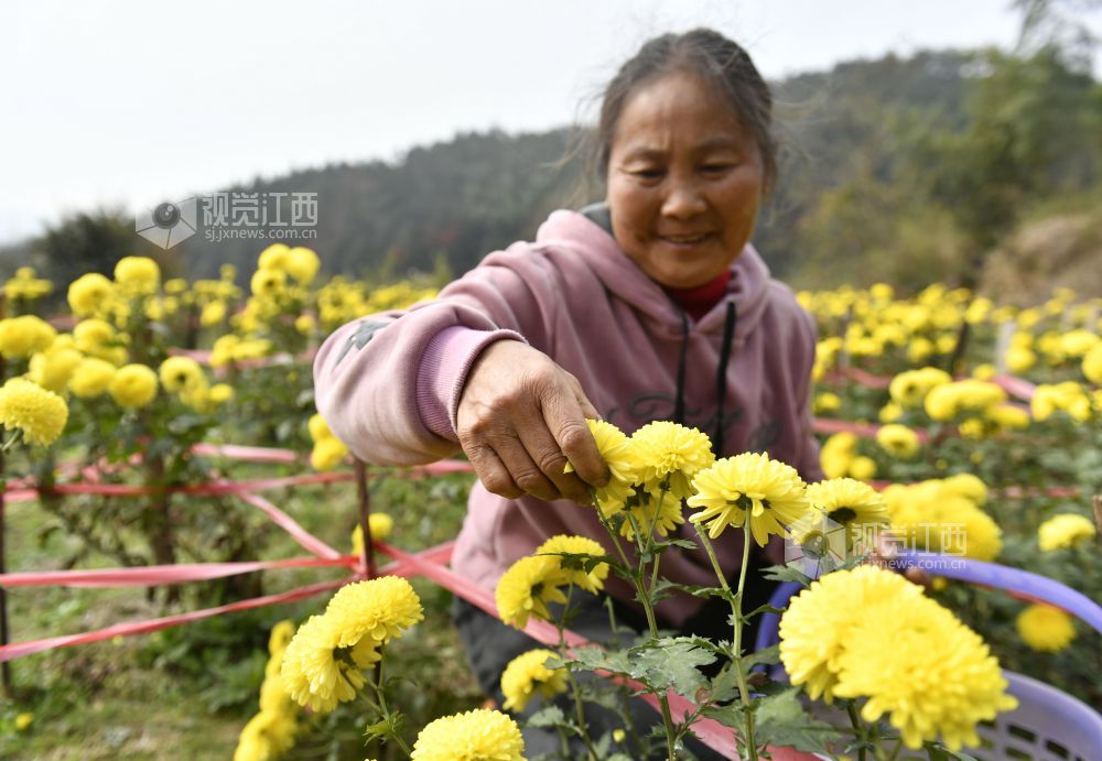 江西南昌:高山皇菊绽放 村民采摘致富花