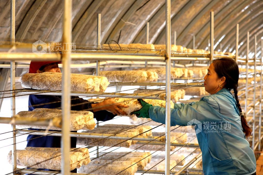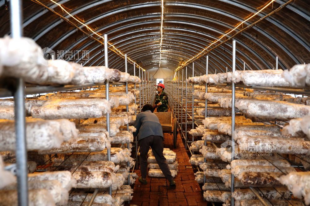 11月4日,江西省分宜县操场乡上松村村民在忙着摆放香菇菌种。连日来,操场乡上松村充分利用当地资源优势,在县扶贫办、乡政府、村委会和驻村帮扶单位的帮助下,筹资270余万元,积极引导村民发展食用菌产业,实施“合作社+基地+贫困户”模式,有效拉动当地特色农业产业发展,带动46户贫困户和农民致富增收。