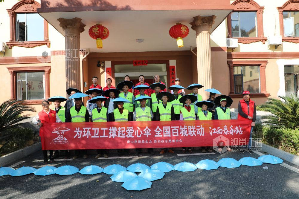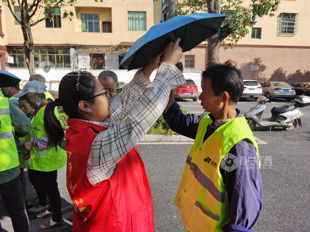 11月5日下午,江西省泰和县志愿者给老营盘镇保洁员送上爱心伞,并手把手教会他们如何使用。老营盘镇小庄村保洁员罗人信开心的说:“有了这把伞,以后可以帮我遮风挡雨了,我要更努力的工作了”。用这把爱心伞为保洁员“保驾护航”。