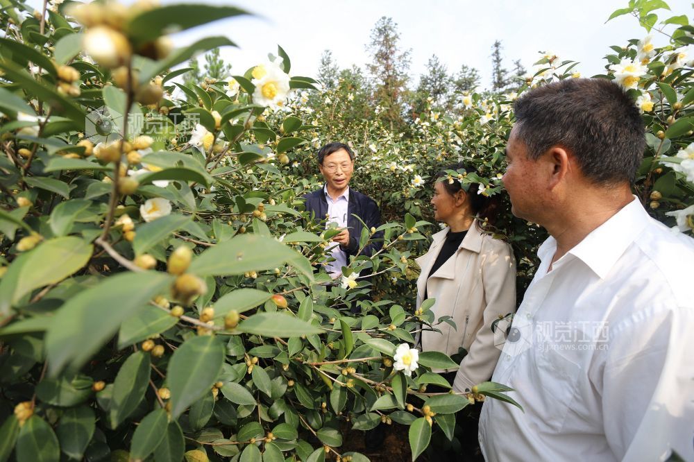 11月6日,江西省安福县横龙镇油茶技术人员在盆形村指导农民管理油茶。立冬前后,正值油茶花期,安福县林业部门抽调30余名技术人员组成“油技队”,深入油茶基地传授油茶冬季抚育管理技术,为明年油茶丰收打下基础。近年来,安福县把油茶产业列为财政重点支持的扶贫产业,该县油茶种植农户已达2.2万户,全县油茶林13万亩。
