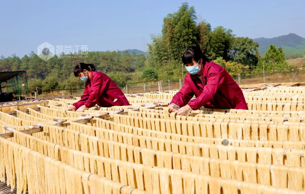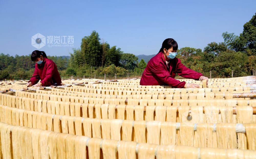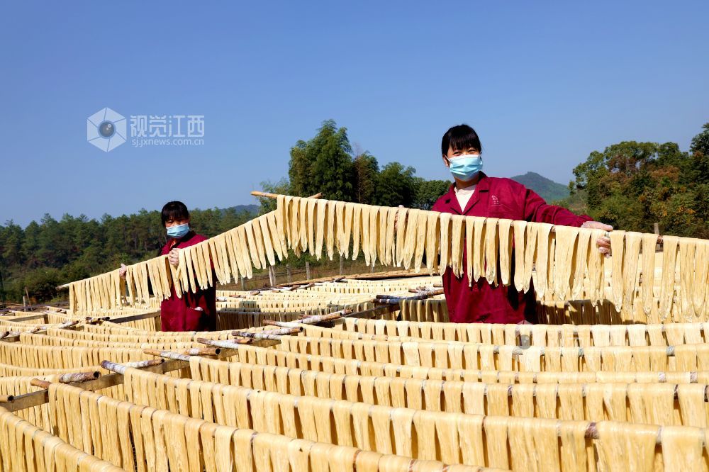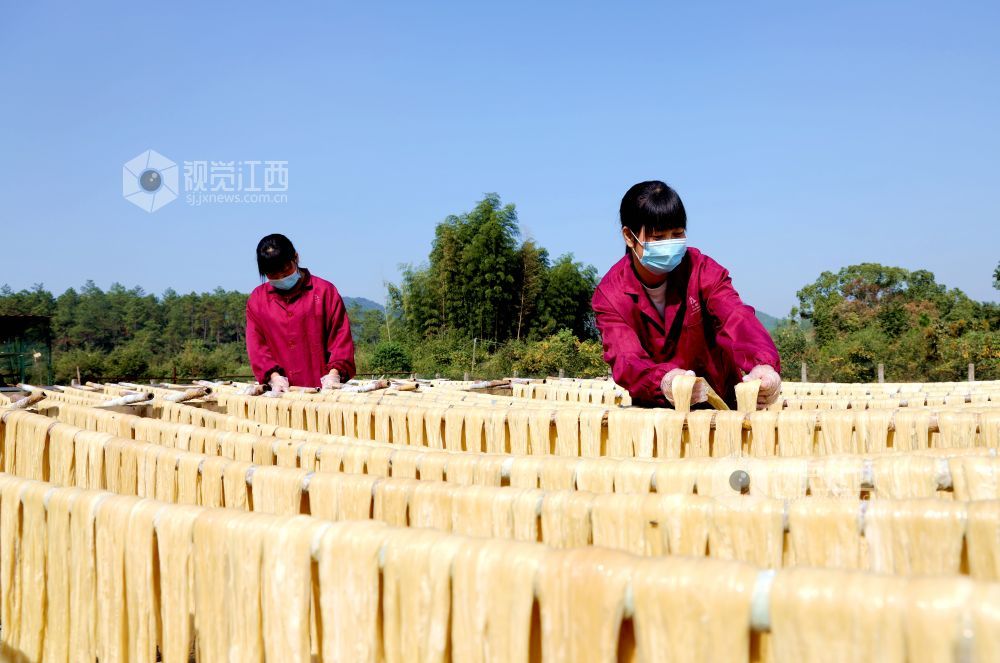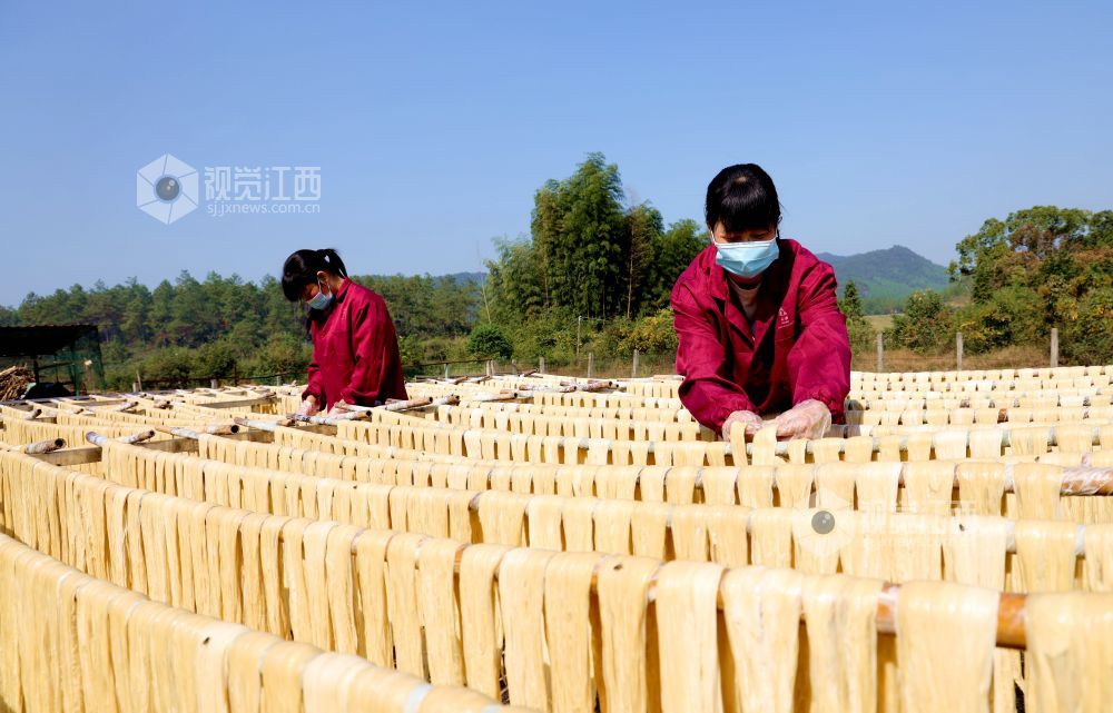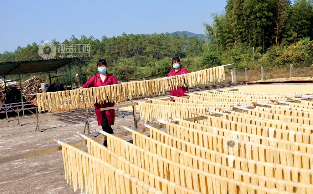 2020年11月6日,立冬将至,江西省吉安市吉水县水南镇西团村天意腐竹合作社,村民正在晾晒腐竹。