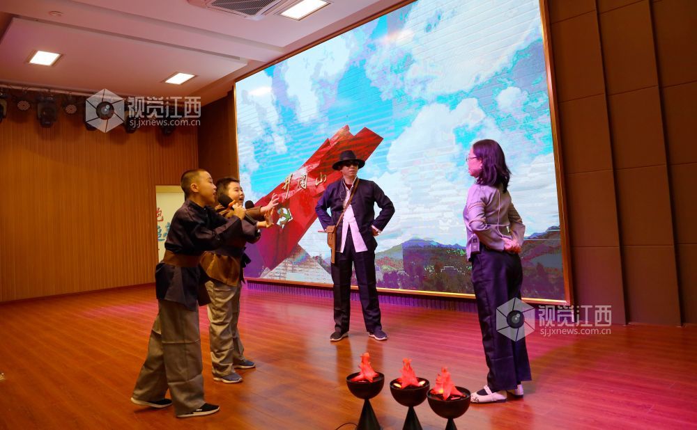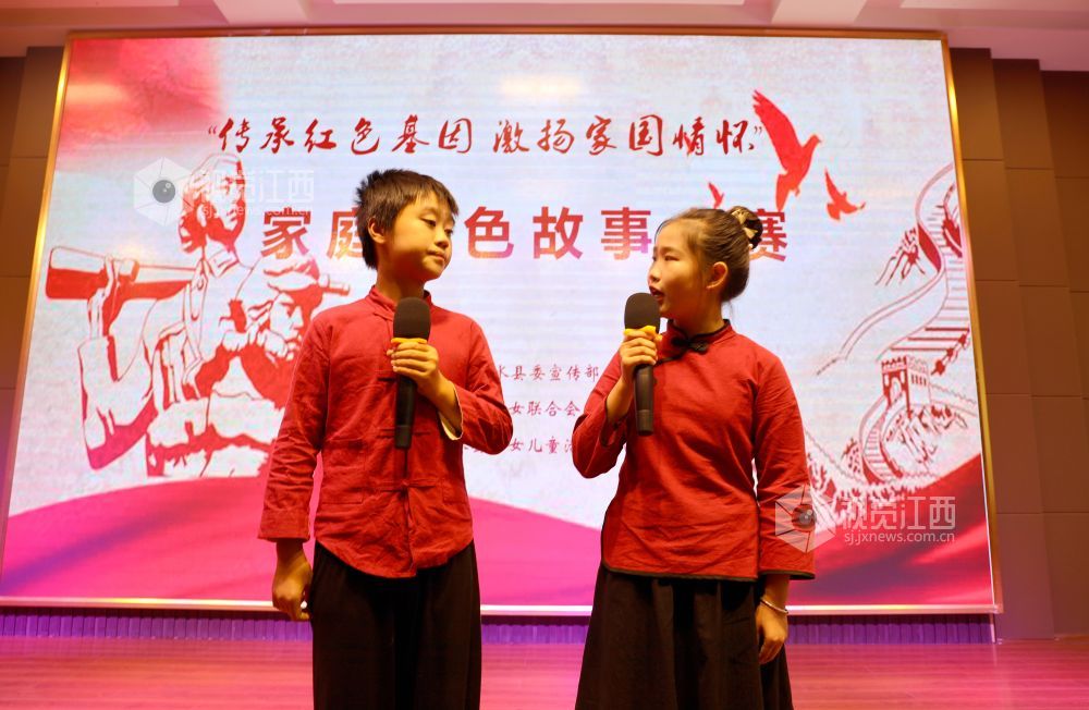 2020年11月6日,江西省吉安市吉水县妇女儿童活动中心,参赛家庭正在讲叙红色故事。为引导广大家庭共同感悟红色故事中承载的初心和使命,进一步激发爱国主义情感,传承红色基因,弘扬社会主义核心价值观,团结带领广大家庭坚定不移听党话跟党走。吉水县开展“传承红色基因 激扬家国情怀”家庭红色故事大赛。