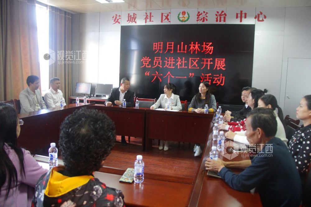 11月8日,江西省安福县明月山林场组织党员干部走进安城社区开展“六个一”活动。