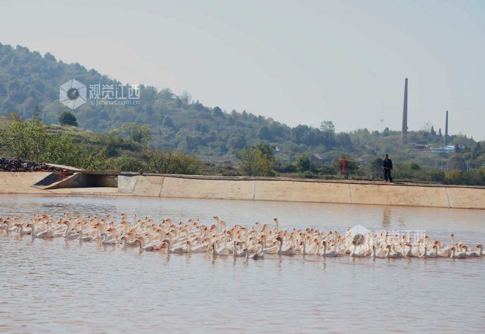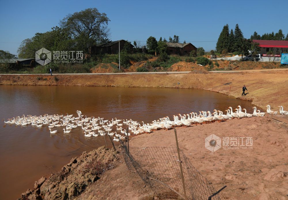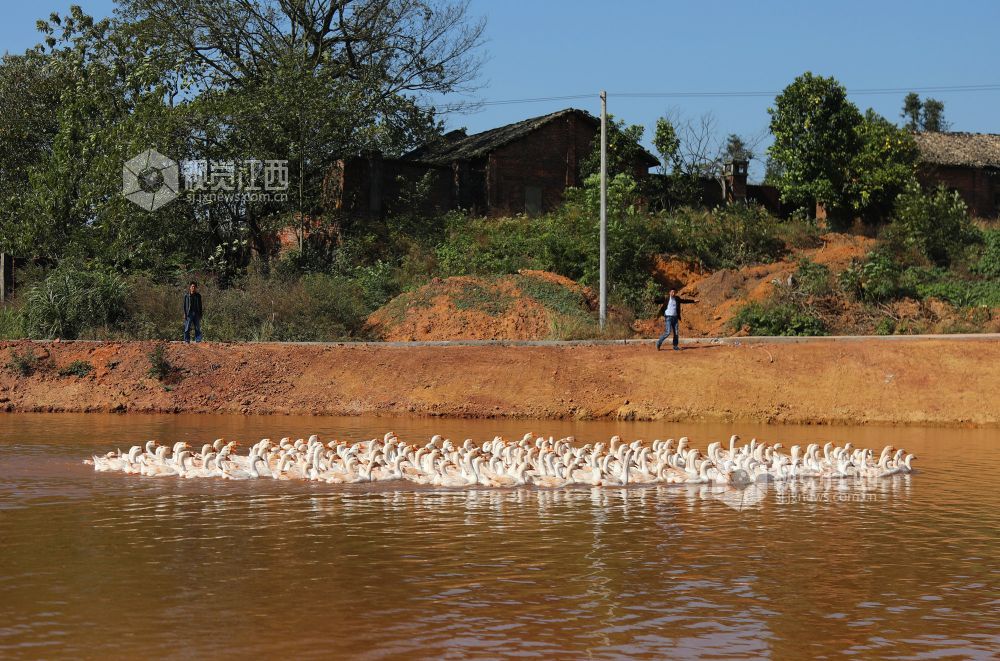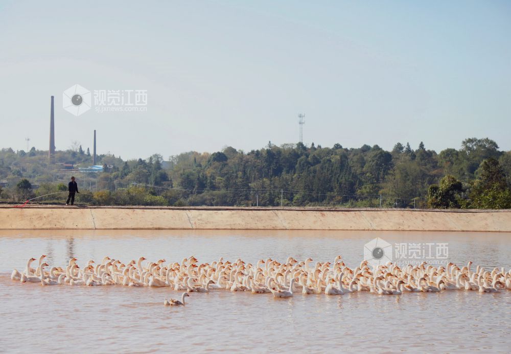 11月12日,在江西省莲花县三板桥乡镇背村白鹅饲养基地,数百只白鹅正在水中觅食戏水。2019年,该乡把白鹅产业作为扶贫支柱产业,采取“合作社+贫困户+农户”模式,带动全乡152户300多名村民和贫困户发展白鹅养殖,年产鹅达30000多羽,每只白鹅纯收入40多元,产业扶贫效益可观。