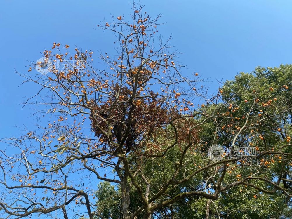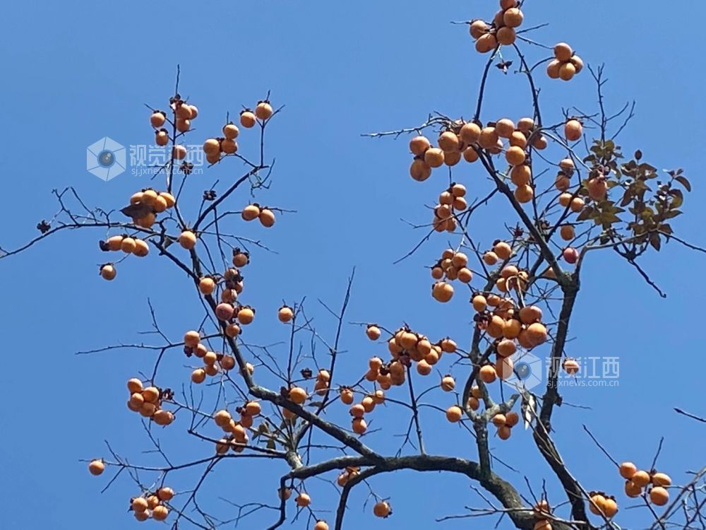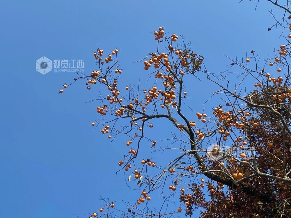 11月15日,在江西省永新县沙市镇涂下垅村黄家自然村的杮子树上挂满了红彤彤的果实,杮子在阳光的照射下闪烁着明亮的光泽,如同一树树彤红的小灯笼点缀着大地山岗,给这初冬的田园村庄增添了一抹亮色。