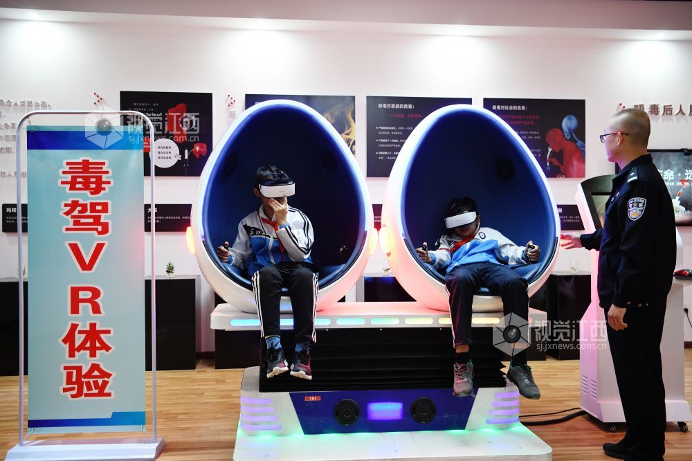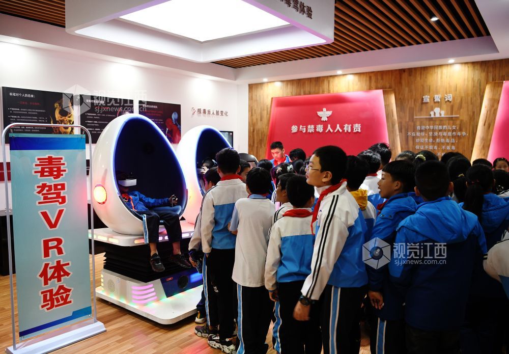 2020年11月16日,江西省上饶市铅山县禁毒教育基地,来自河口一小学生在基地体验VR毒驾。为不断增强学生的防毒、拒毒意识,让学生从小知晓毒品的危害。