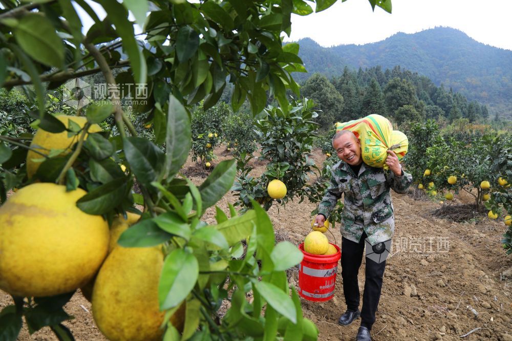11月16日,在江西省莲花县高洲乡小背村华华专业合作社种植基地,150亩红心柚开始进入成熟期,香气四溢,村民陈景林正忙着采摘。柚子园带动了村里贫困户和村民近30人就业,每人每年仅工资这一项收入就达3000元。