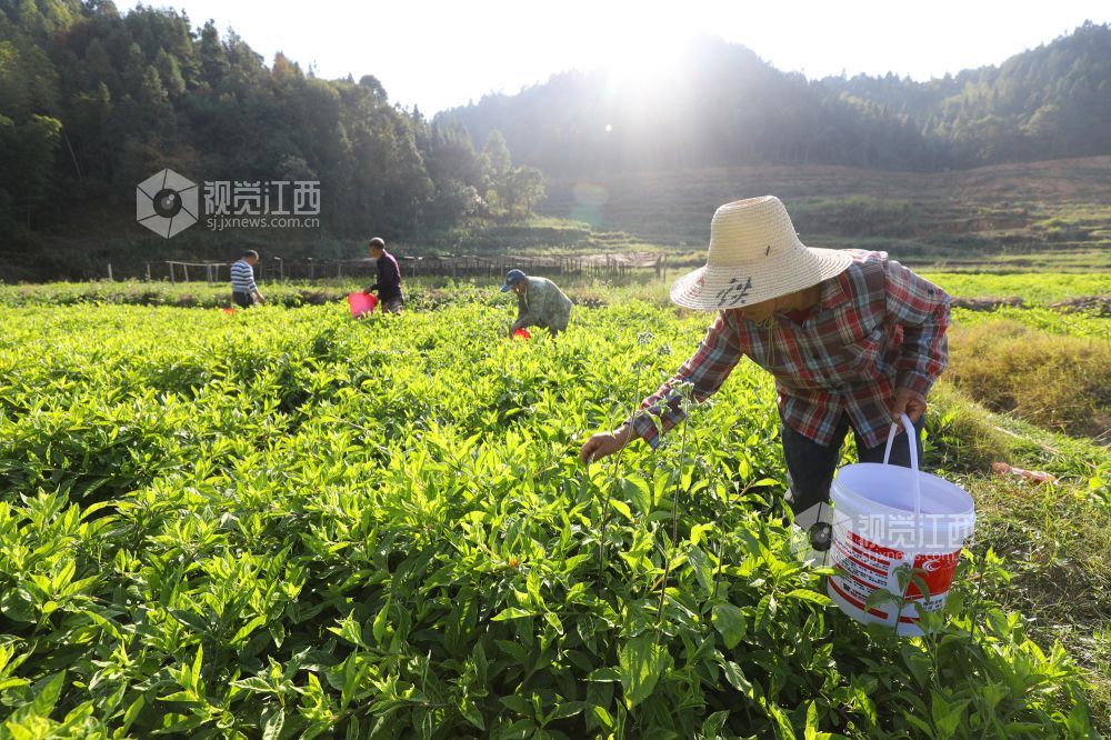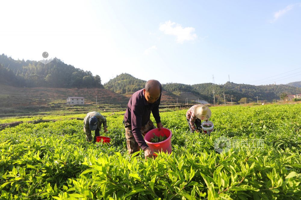 11月19日,在江西省莲花县荷塘乡长曲湾村,50亩平卧菊三七郁郁葱葱,长势喜人,村民们正忙着采收。该村通过成立合作社,将扶贫资金入股合作社,让贫困户变成股东。据了解,平卧菊三七既是中药材,也能直接食用,每亩纯利润可达6000元左右,入股当年贫困户就能获得分红。