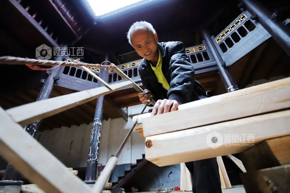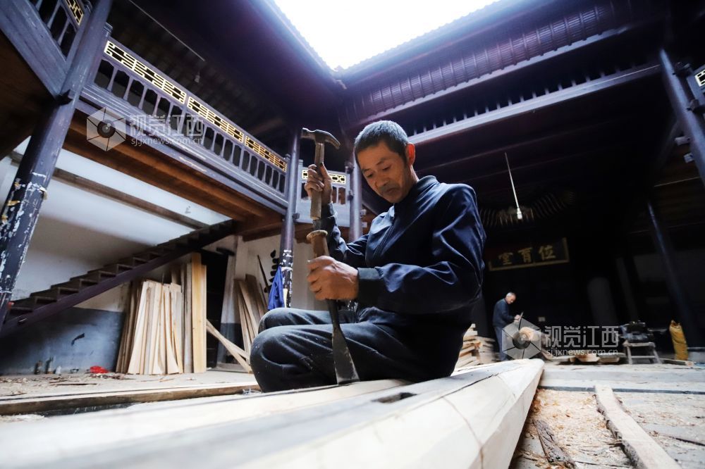11月19日,江西省安福县钱山乡新民村施工人员在对古建筑进行修缮。安福是江西省十八个文明古县之一,全县有620余栋古建筑。