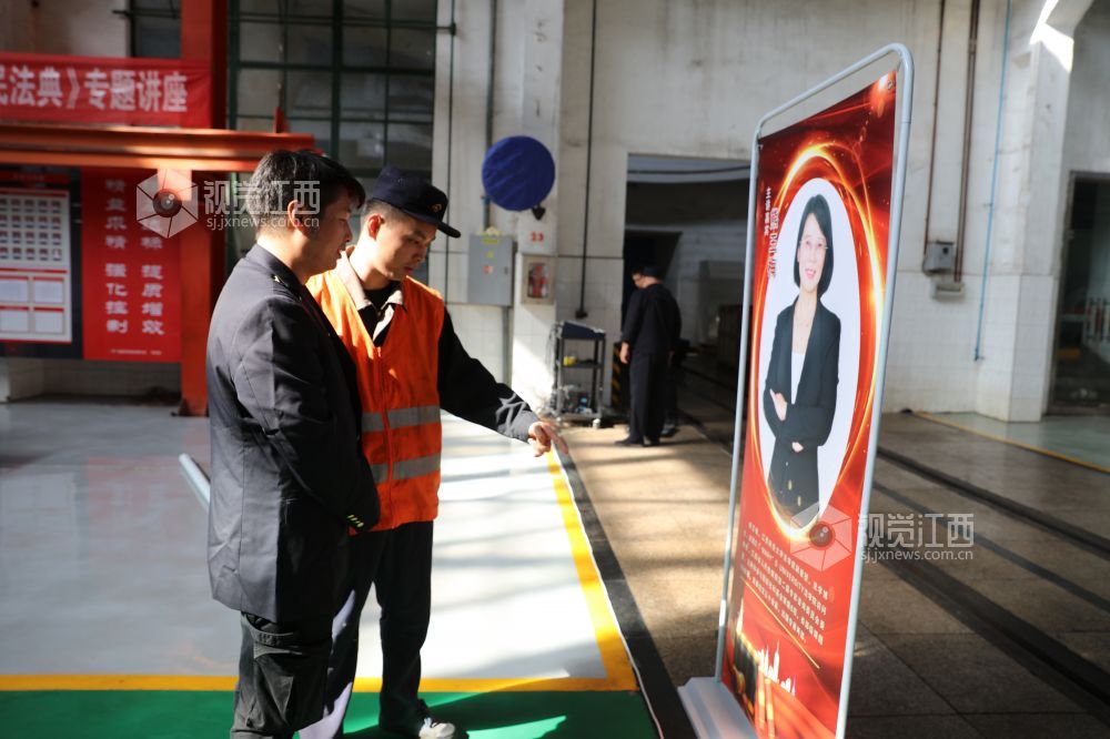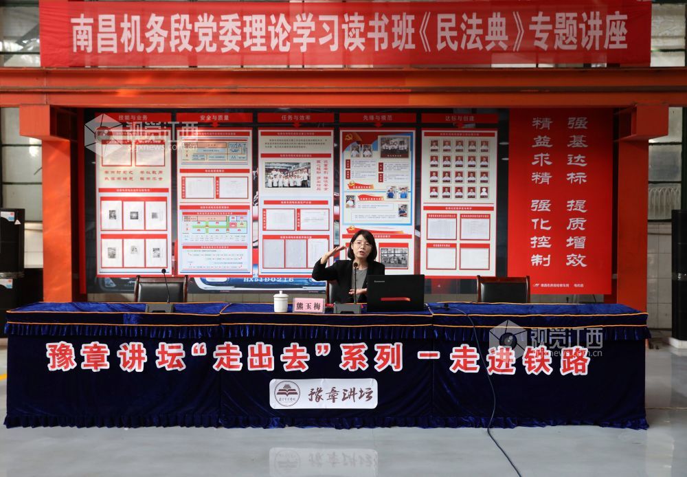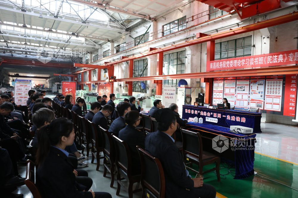 11月18日上午,“豫章讲坛‘走出去’系列——走进铁路《民法典》读书班专题讲座”走进南昌机务段检修车间,进行了一场别开生面的普法知识讲座。