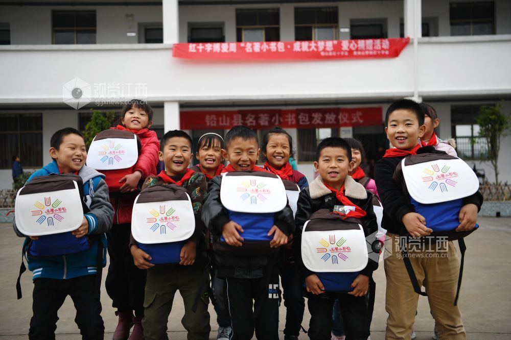 2020年11月24日,在江西省上饶市铅山县武夷山镇黄岗山学校,红十字博爱“名著小书包,成就大梦想”爱心捐助活动在此举行。“名著小书包”活动是针对农村少年儿童优秀读物匮乏与不良口袋书泛滥双重阅读危机,秉承“教育扶贫、名著扶志”理念,帮助他们学有所成,走出大山,为实现“中国梦”添光助力。