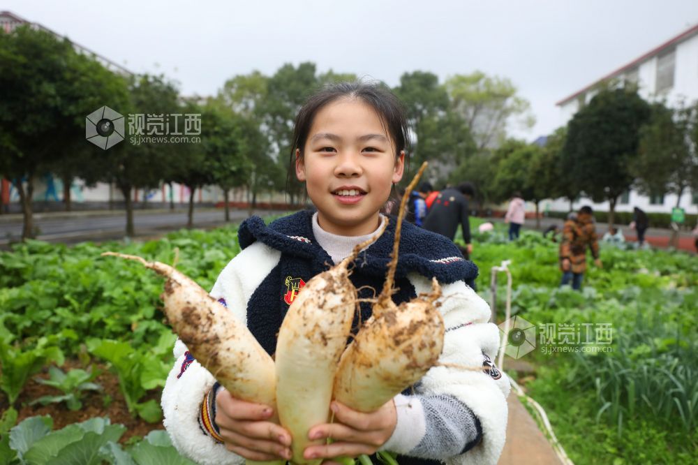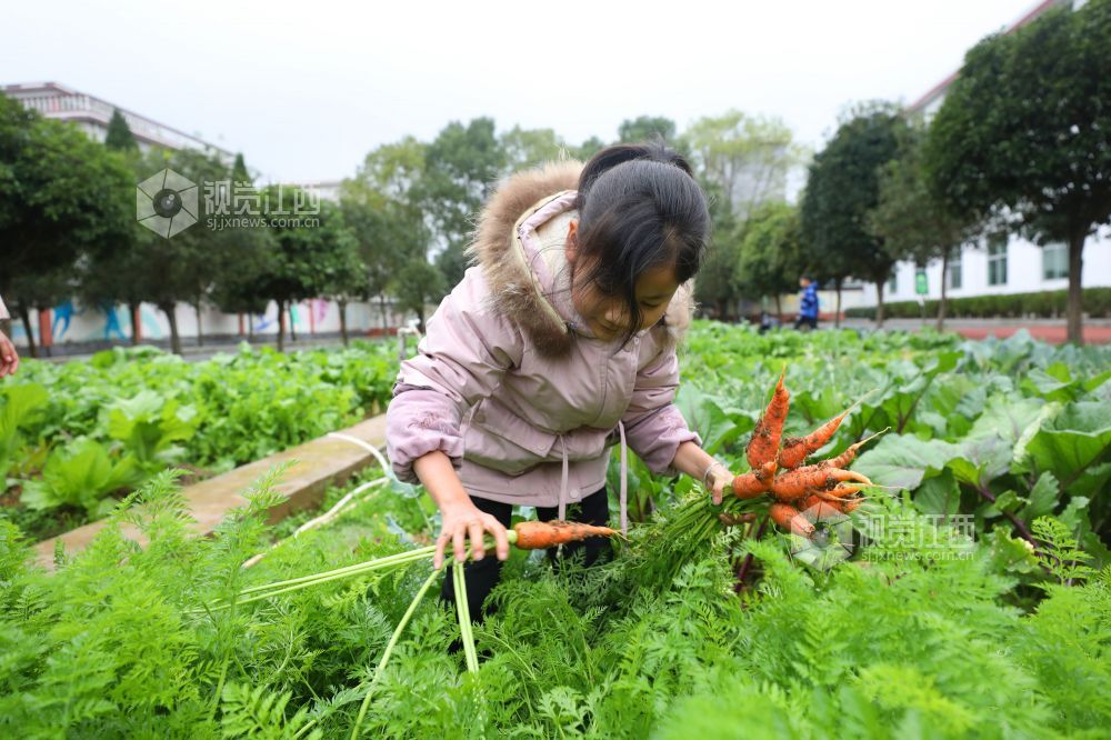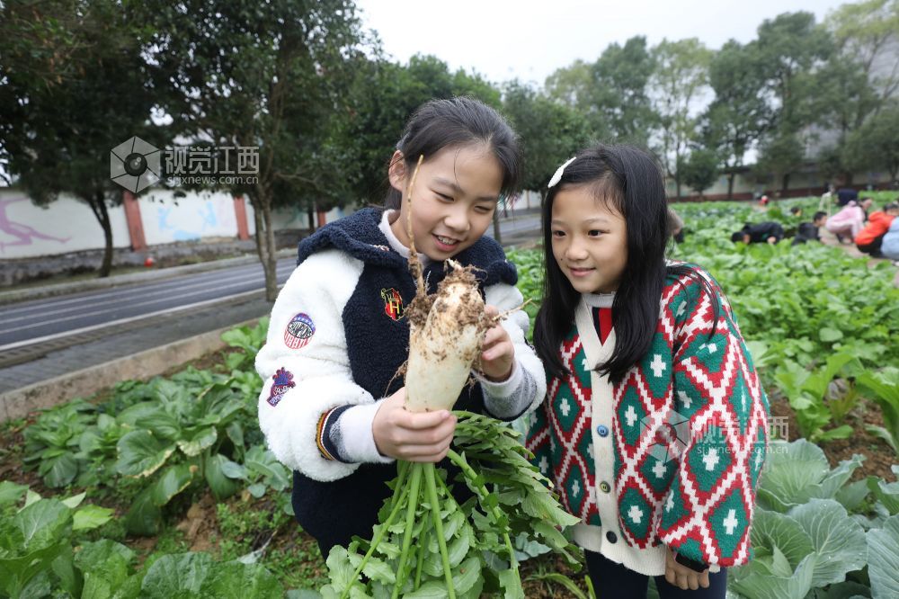 11月26日,在江西省莲花县琴亭镇杨枧小学的劳动教育实践基地,萝卜、白菜、芹菜等二十多种蔬菜长势喜人,同学们在老师的指导下观察、采收蔬菜,分享收获的喜悦。该校在2010年利用空地开辟出2亩多菜地,让学生们在各自的“责任田”里撒种、培土、浇水、施肥等,在实践中增长知识,体验劳动艰辛与乐趣。