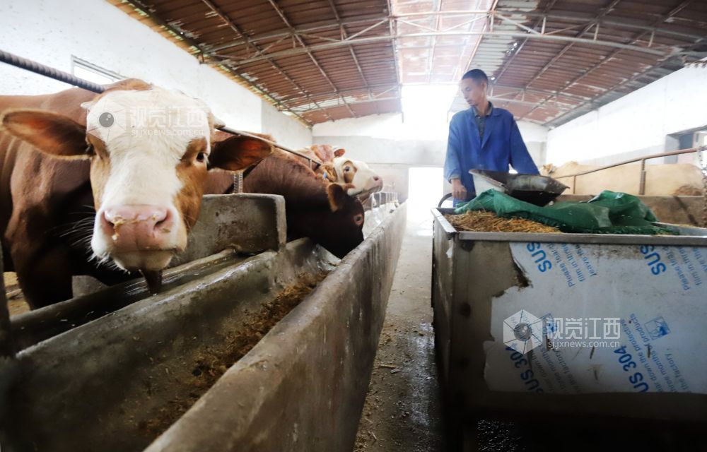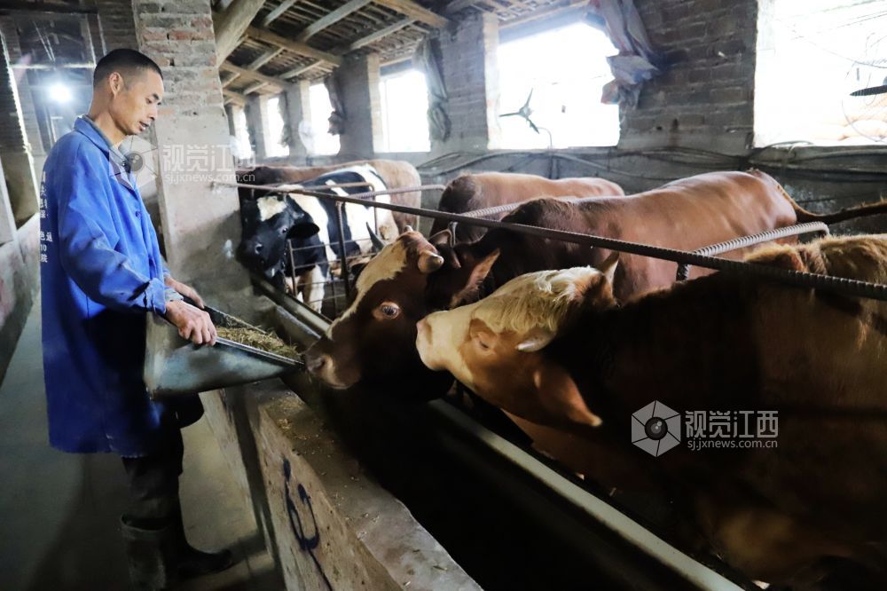 11月26日,江西省安福县枫田镇岭下村村民在喂牛。该养牛场由岭下村村民罗卫娥牵头创办,年出栏肉牛200余头。在罗卫娥的带动下,枫田镇20余户农民加入养殖肉牛行列,并稳定致富。
