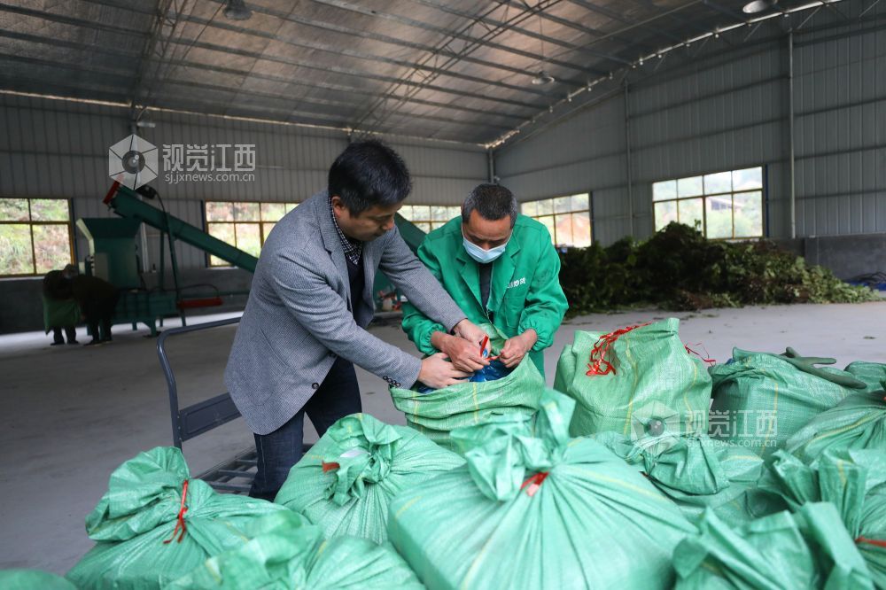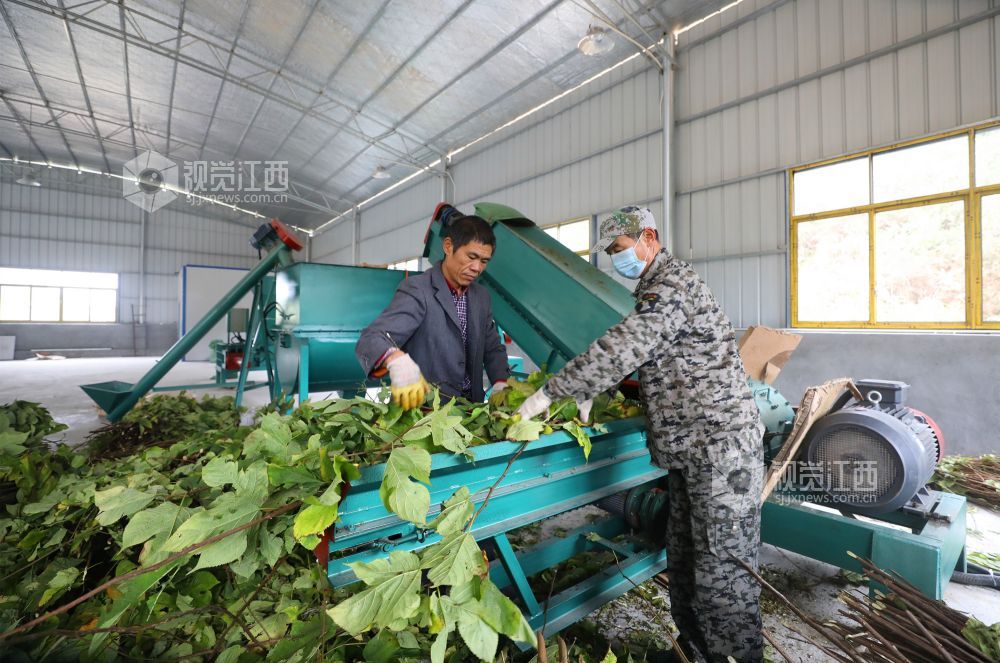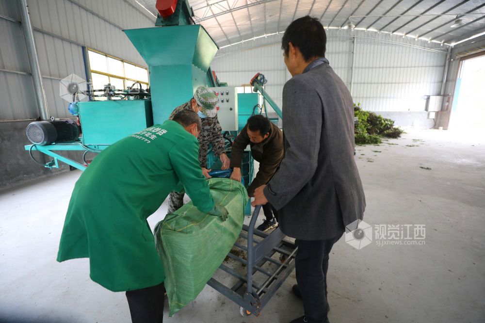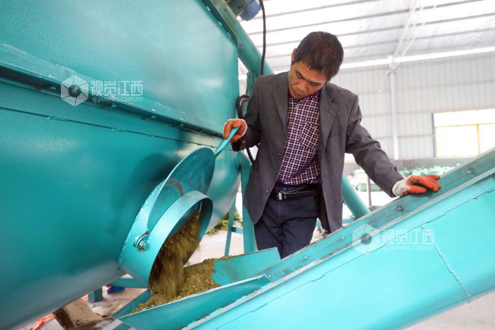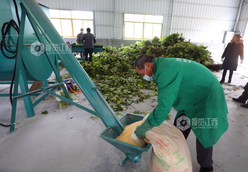 11月30日,江西省莲花县神泉乡永坊村构树饲料加工车间,村民正在忙着生产构树饲料。近年来,该村以党建+合作社+贫困户的形式,大力发展生态养猪业,通过把种植的构树加工成饲料供应给养猪专业户,降低生产成本,提高肉猪品质,让全村32户贫困户从中得到实实在在的收益。