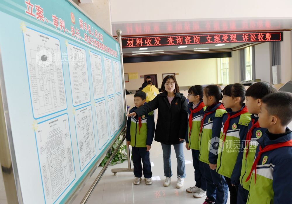 在12月4日国家宪法日即将到来之际,江西省南丰县琴城镇司法所联合县人民法院将辖区小学生法治教育课搬进法院,让小学生旁听庭审现场、听一线法官讲解法治知识,感悟宪法精神。