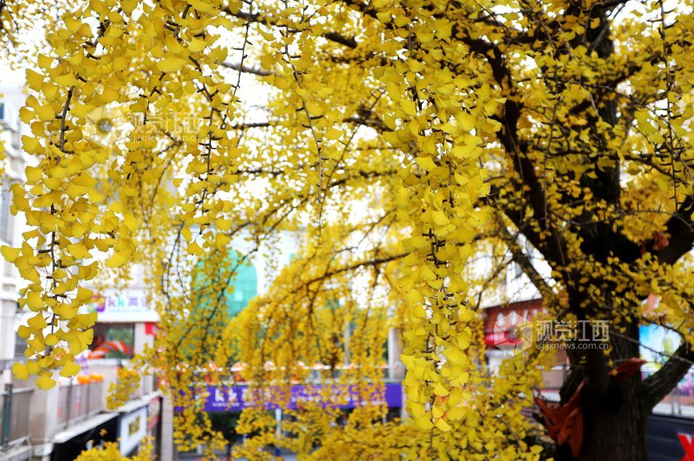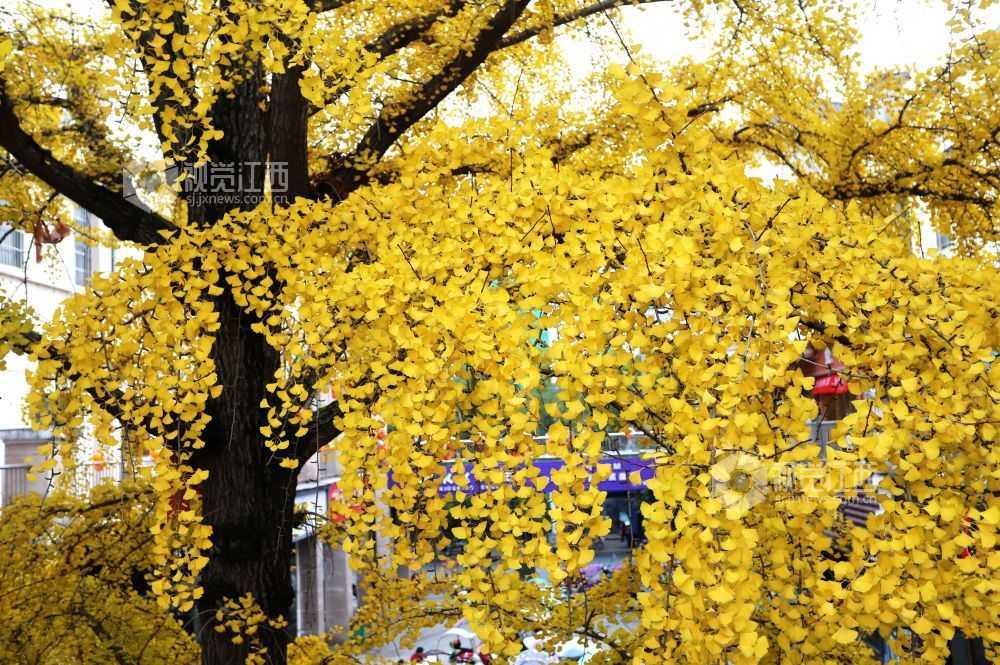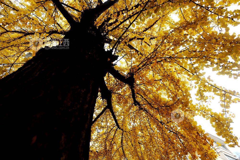 12月5日,江西省吉安市安福县平都镇铁井社区一棵银杏树披满“黄金甲”。该树高约20米,有近50年的树龄,在城市建设中,被完好的保存下来,并生长良好。深秋时节,这棵银杏的叶子慢慢变黄,直至大雪节气前后,整棵树的叶子黄灿灿的,恰似一棵挂满金铂的“黄金树”,自成一景,给社区平添喜庆吉祥。