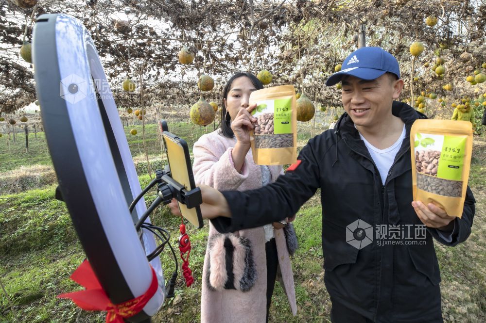 12月12日,江西省庐山市开展扶贫直播进乡村活动,由商务部门培训的十余名主播走进星子镇,为扶贫基地生产的瓜蒌子进行线上推广。 为了激活扶贫产业发展活力,助力乡村振兴,庐山市线上线下共同发力,努力拓宽销售渠道。通过打造电商培训中心,针对乡镇干部、扶贫第一书记、创业人员、待业青年开展培训。全市累计开展电商培训46 期,培训超过4000人次,其中贫困人口 800人次,带动学员开设网店 1500家。