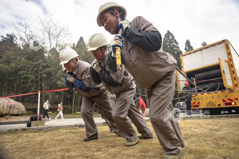 12月13日,大规模降温到来之际,江西省庐山市供电部门举行应急演练,确保关键时刻人民群众生产生活用电不受影响。