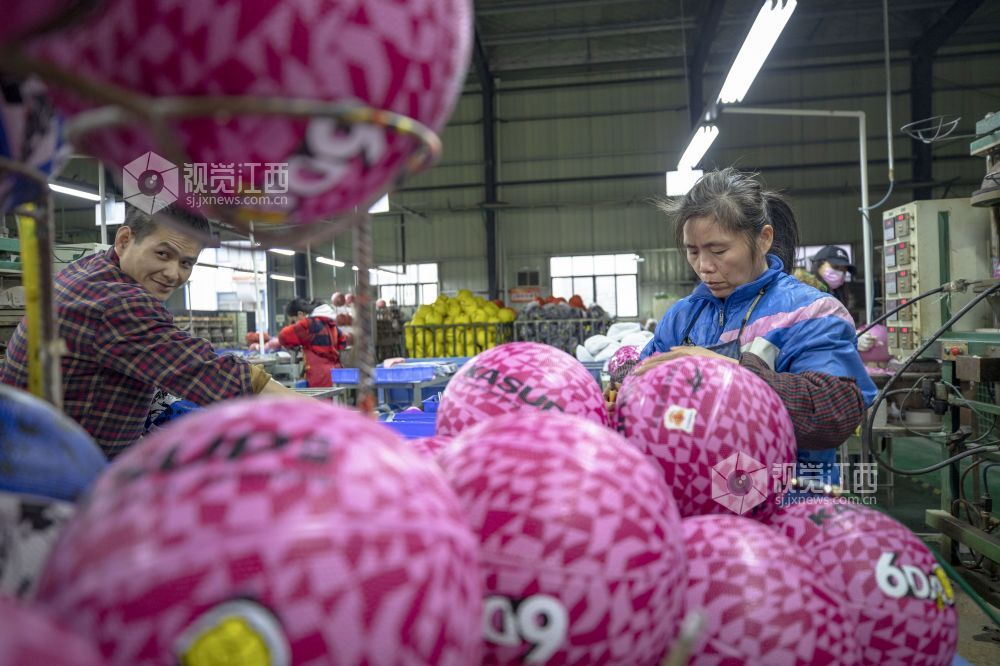 12月16日,江西省庐山市传统出口型企业一公司车间内热火朝天,工人们正在抓紧生产各种充气球类产品。 庐山市按照“稳住外贸基本盘”的要求,持续加大做稳外贸政策支持力度,精准施策,全力保订单、保履约、保市场、保份额、降成本、防风险,切实增强外贸产业链供应链的稳定性和竞争力。