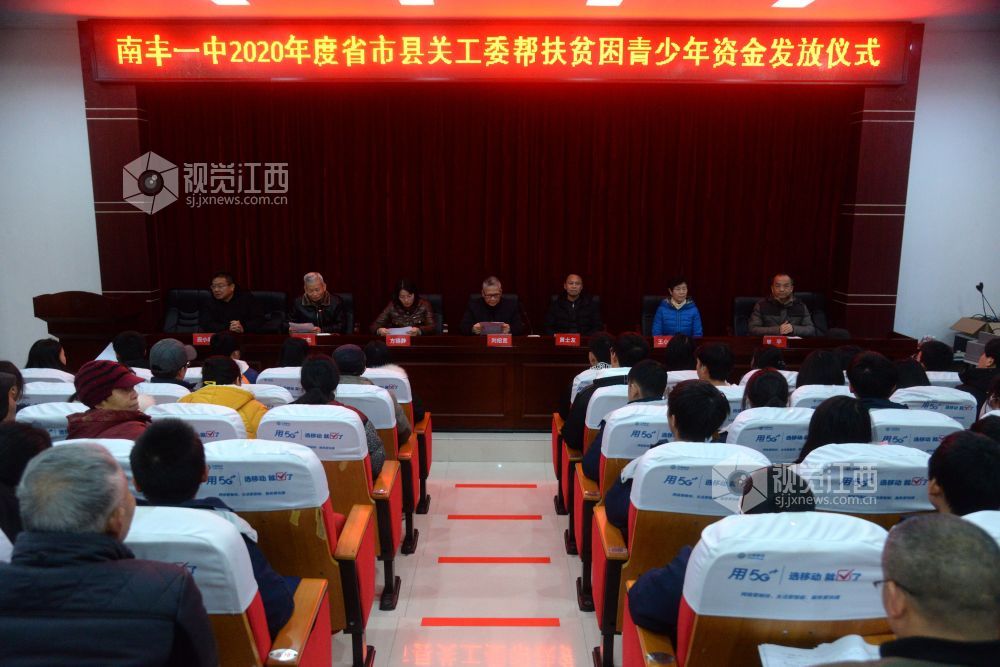 2020年12月18日下午,江西省南丰县关工委、县教体局关工委、南丰一中关工委在南丰一中阶梯教室举行“2020年度省市县关工委帮扶贫困青少年资金发放仪式”,为56名2020年省、市、县三级关工委一对一帮扶帮教留守儿童贫困青少年以及一对一帮扶帮教品学兼优贫困学生,送去慰问金47400元,帮助家庭困难学生解决学习、生活上遇到的经济困难问题。