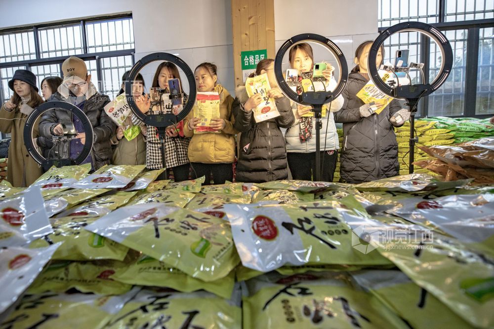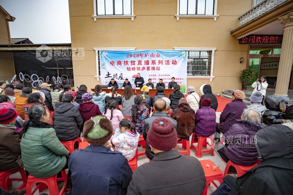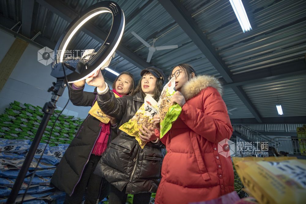 2020年12月19日,江西庐山市青山垦殖场庐茗缘土特产开发有限公司的包装车间里举行电商扶贫直播。 庐山市通过扶持特色企业,壮大扶贫产业,增加就业岗位,解决贫困户就业难题。同时,大力培养本土电商直播人才,拓宽产业销售渠道,使产业扶贫道路越走越宽阔。