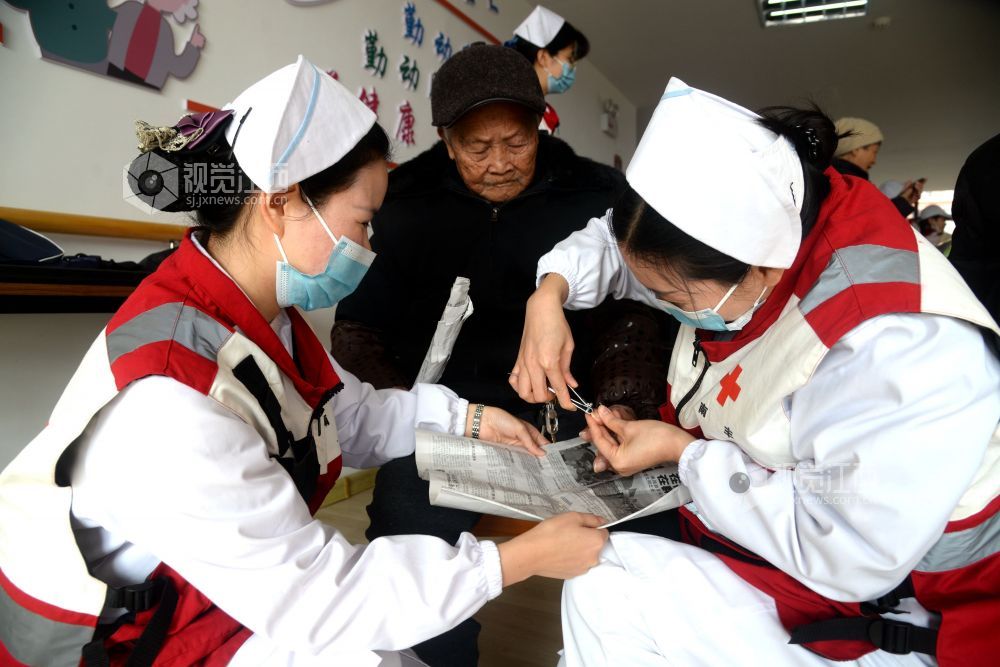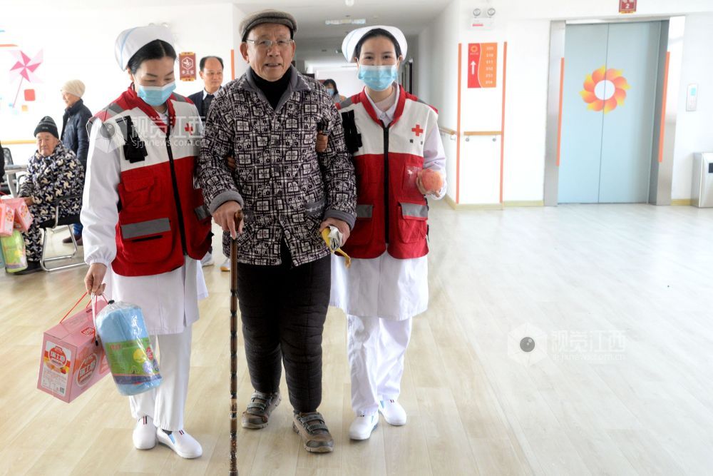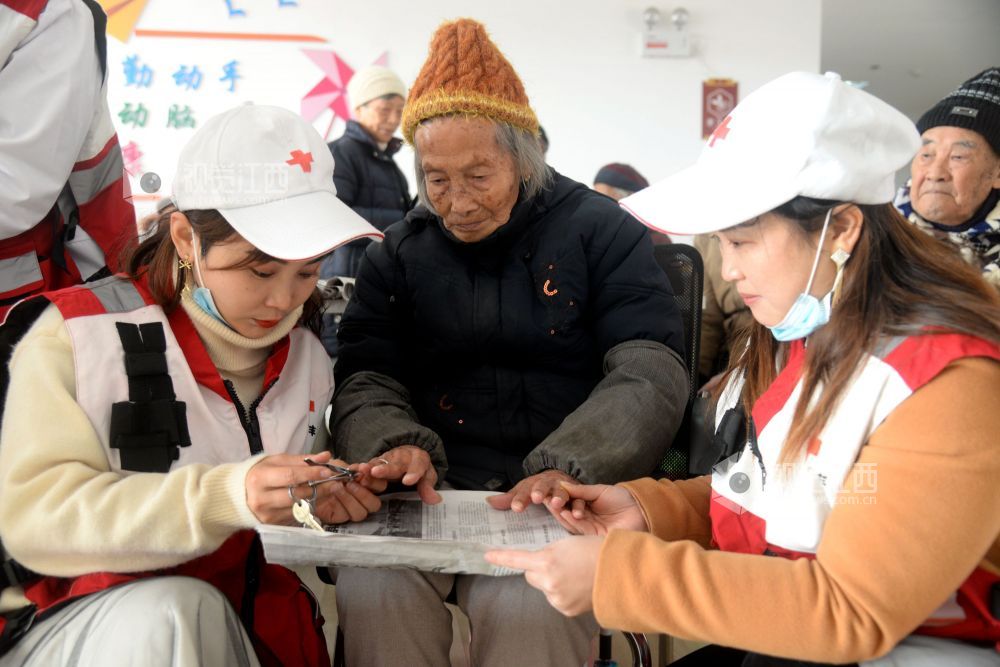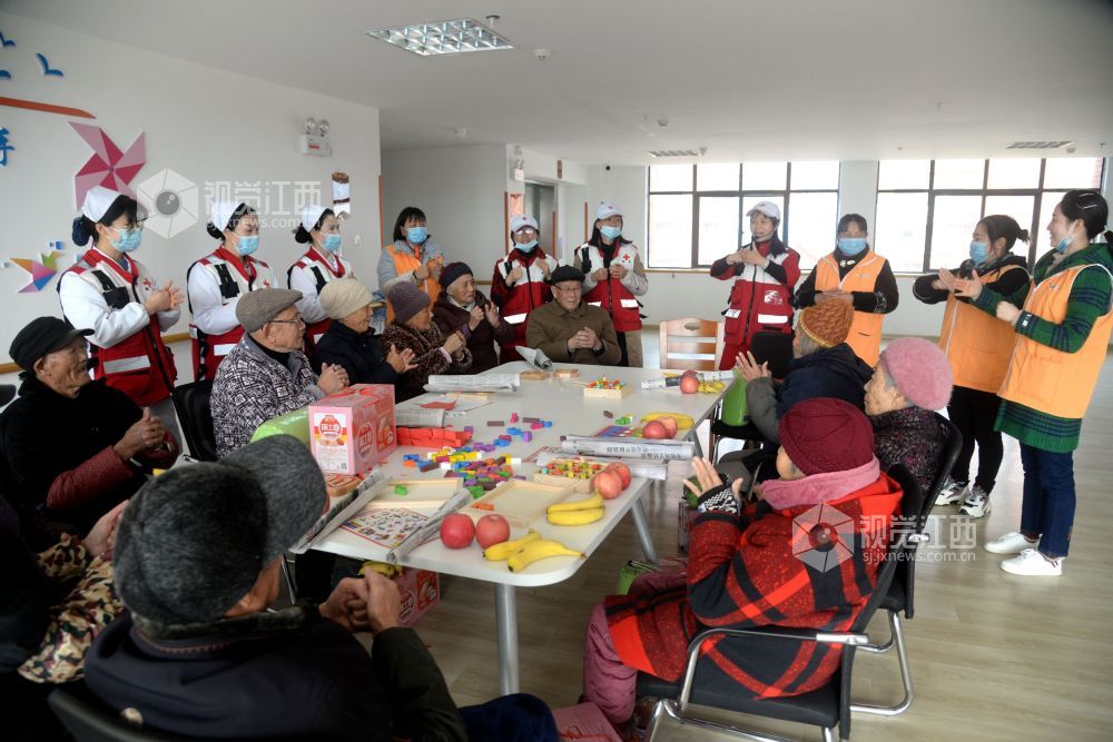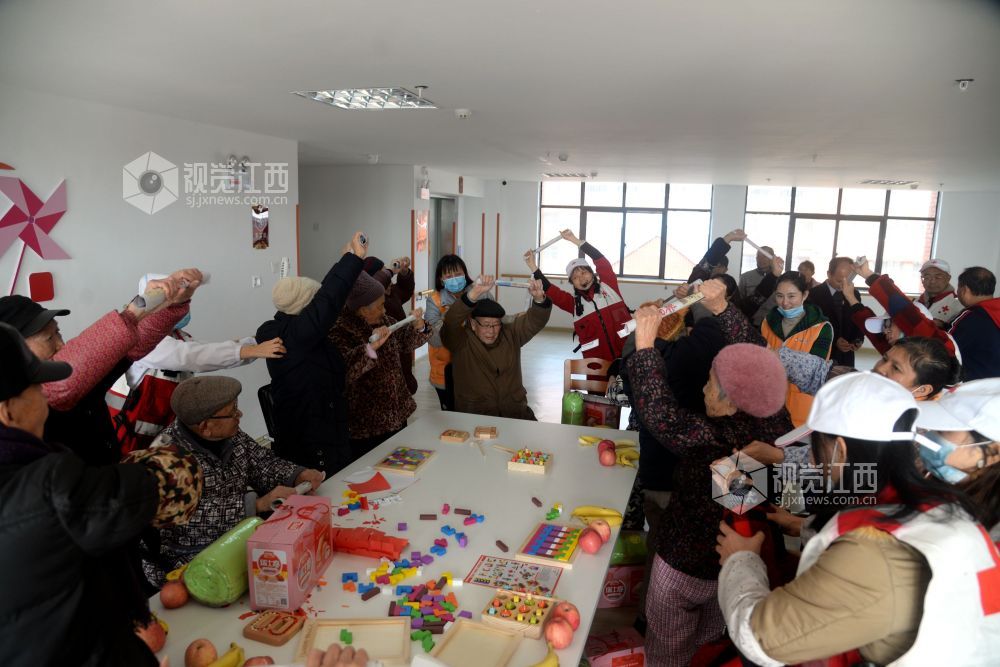 2020年12月25日,江西省南丰县红十字会组织老年介护志愿服务队的志愿者,来到南丰县养老康复中心开展“送理念、送健康、送温暖、送技能、送快乐”活动,深受老人们的欢迎。