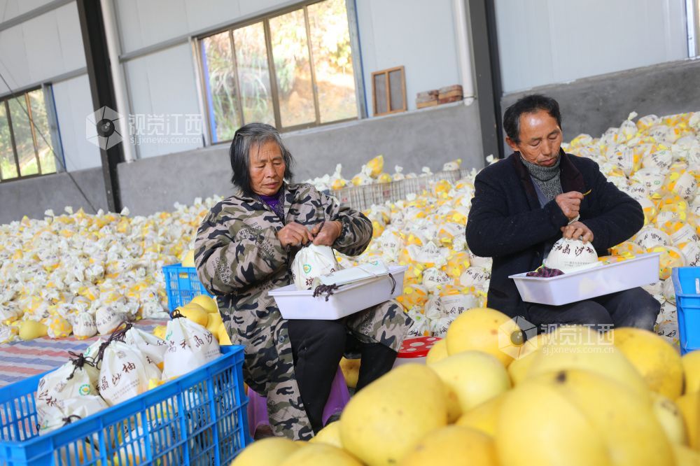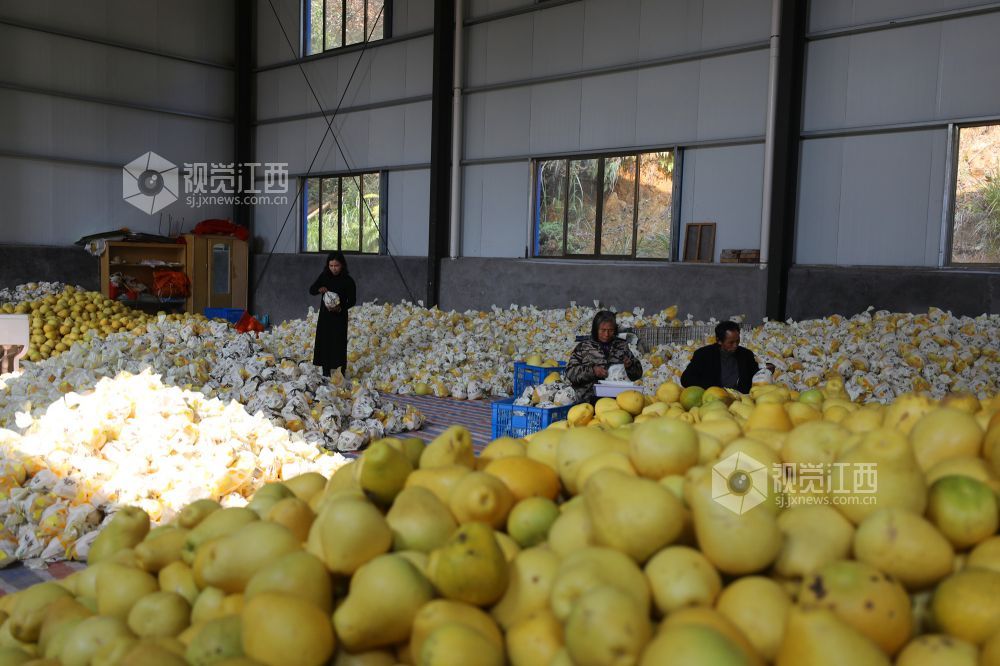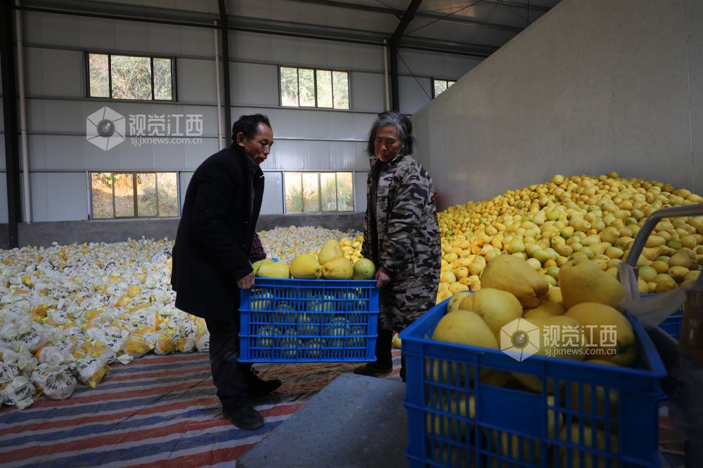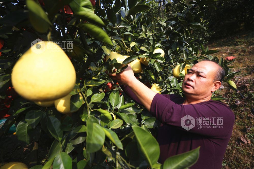 12月28日,在江西省莲花县神泉乡棋盘山柚子种植专业合作社里,社员们正在忙着采摘、搬运、包装柚子,准备发往沿海地区。果园地处湘赣大山深处,受光照气候等条件的影响,这里的柚子采摘期比其他地方晚了一个多月,即使已经进入寒冬,300多亩柚树林依然苍翠葱茏,沉甸甸的柚子挂满枝头,处处洋溢着丰收的喜悦。