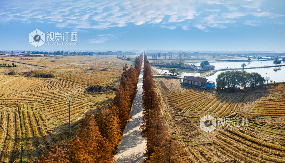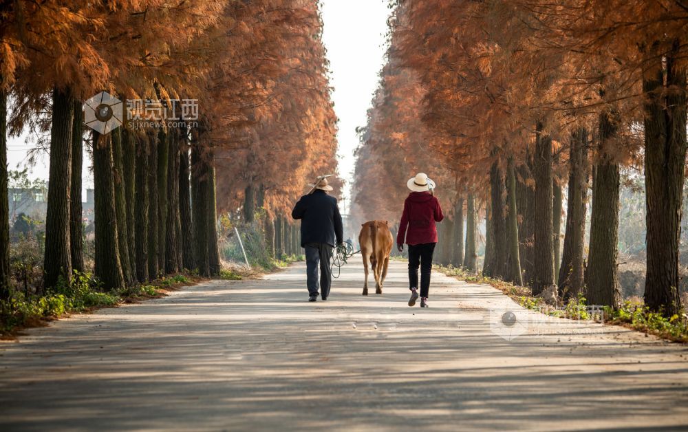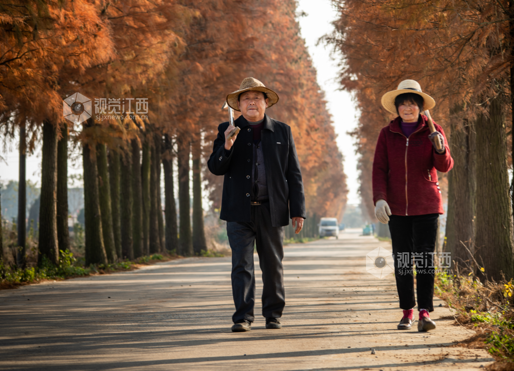 江西省南昌县南新乡黄渡村老党员,老退伍军人廖发根,1985年为防风防沙,自发的在田间地头.村子周围和道路两旁,义务种植冷水杉树1000余棵。35年来,他与乡人大代表的老伴刘文华发动全家老小齐上阵,义务种树护林,除草防虫,悉心呵呼着杉树,在当地村民中传为佳话。初冬时节,黄渡村红彤彤的杉树犹如一道靓丽的风景线,让人留连。