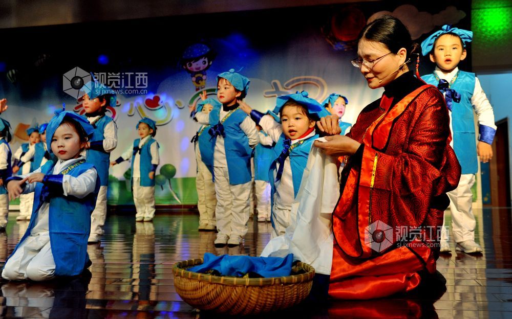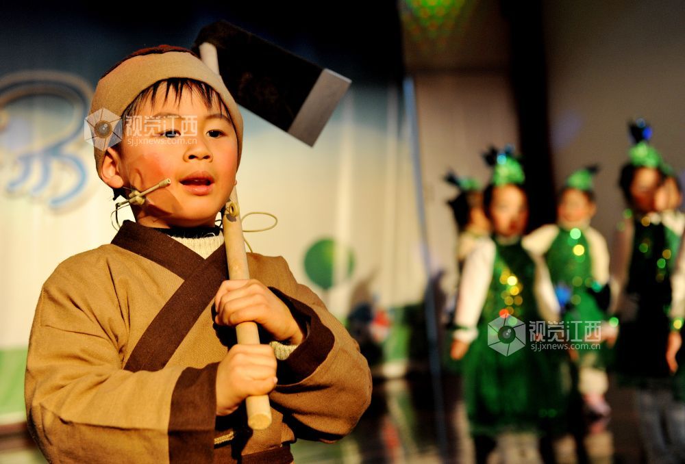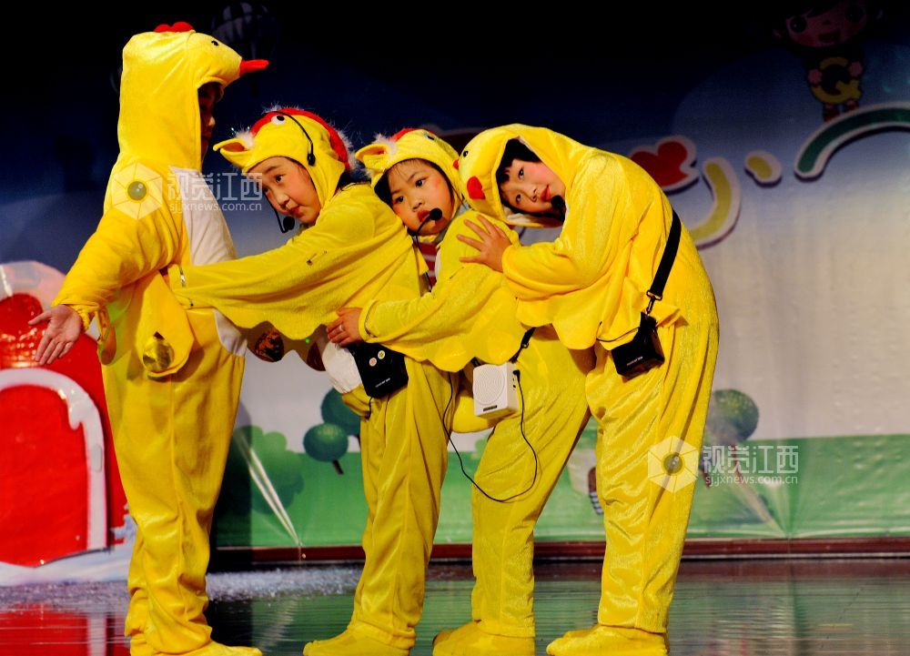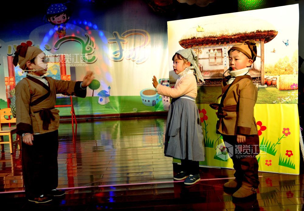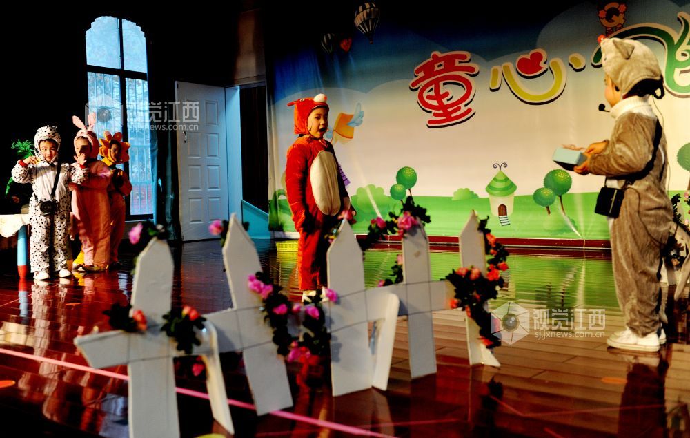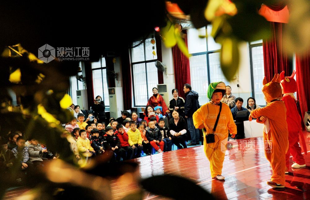 2020年12月29日,江西省德兴市铜矿中区幼儿园的中班小朋友正在表演《小熊请客》情景故事。