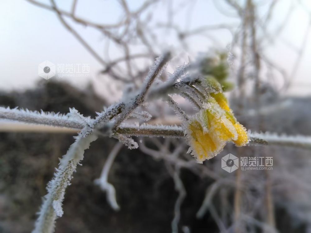 12月31日,江西省永新县气温降至零度以下,清晨的永新大地白茫茫一片,出现霜冻景象。水稻田里,草场上,菜地上,表面都结了一层厚厚的冰晶,像朵朵怒放的冰花,河沟里的草也结了霜,在阳光的照耀下显得晶莹透亮,煞是好看。