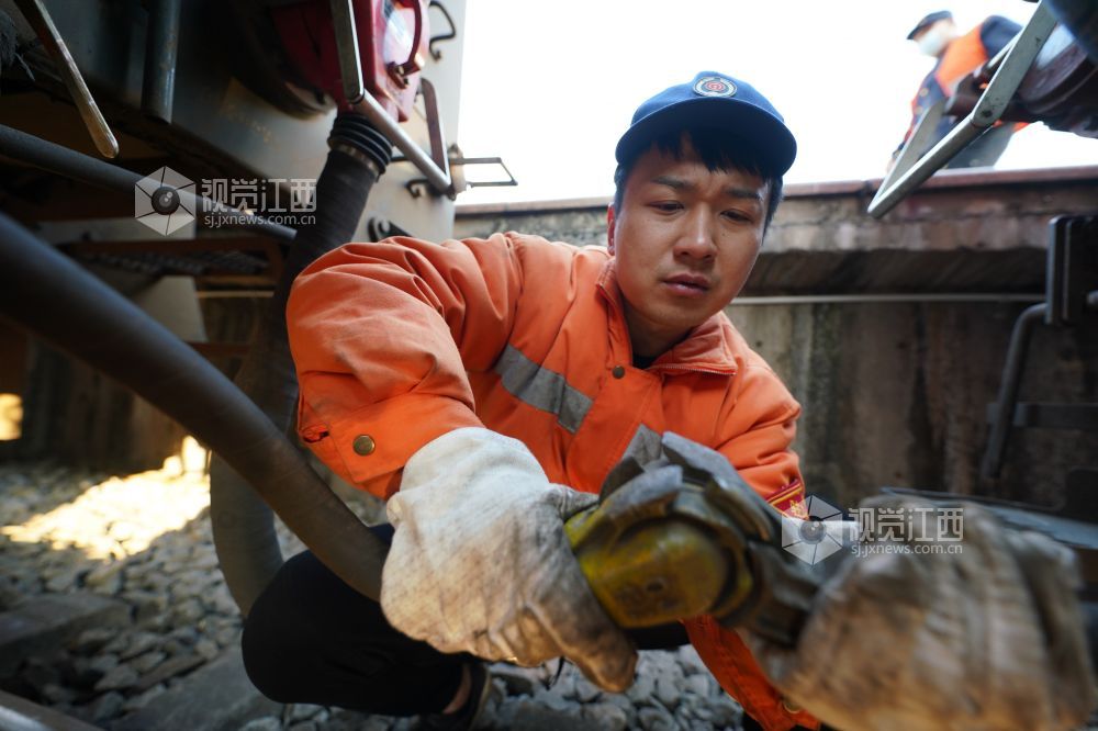 为了确保元旦小长假期间广大旅客安全出行,中国铁路南昌局集团有限公司南昌车辆段的职工夜以继日坚守本职岗位,战斗在运输一线,把守着旅客列车的一道道安全防线。