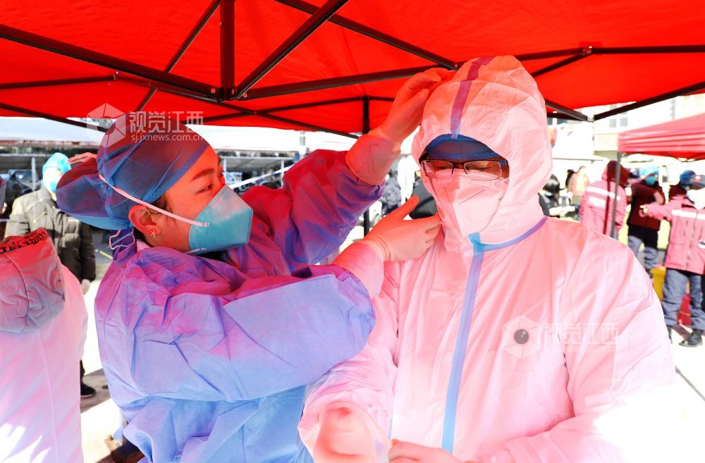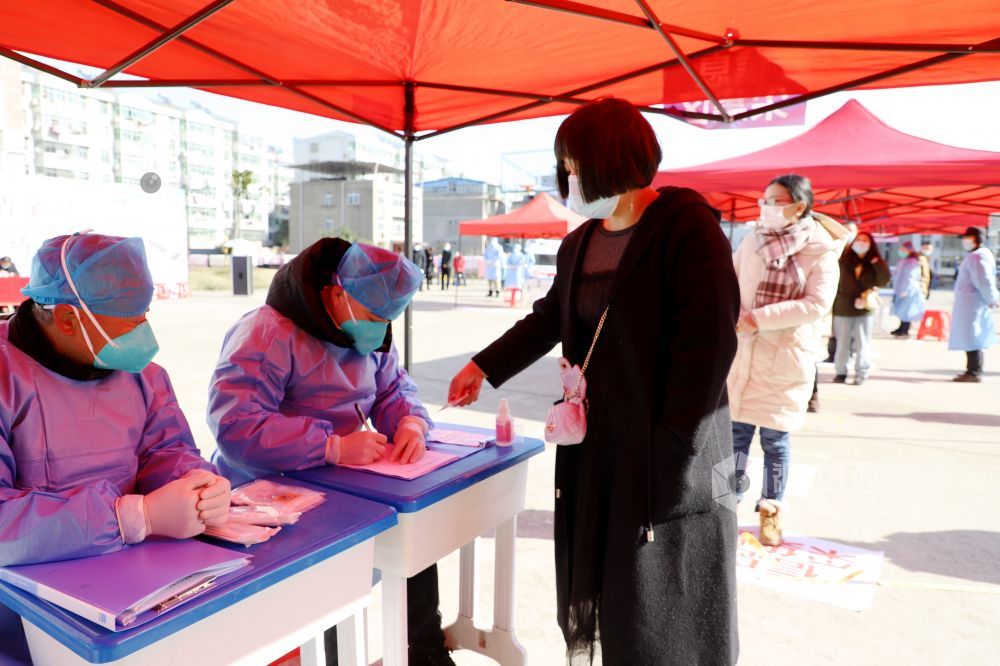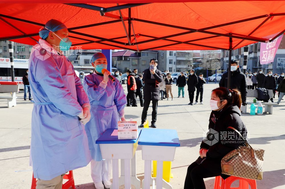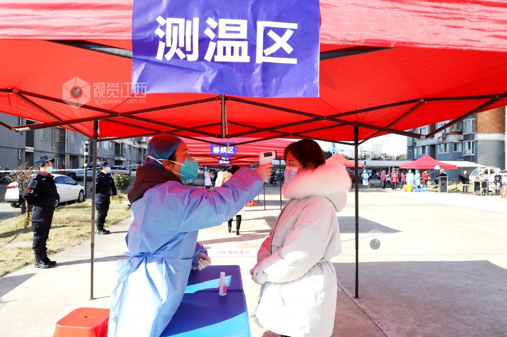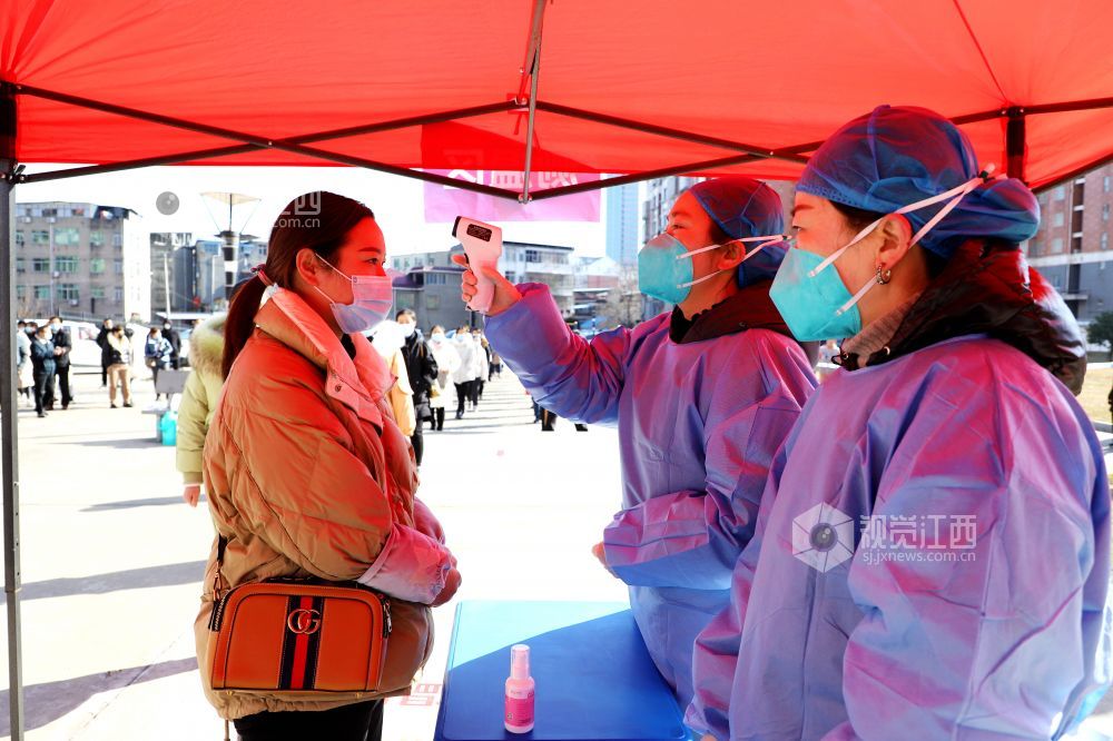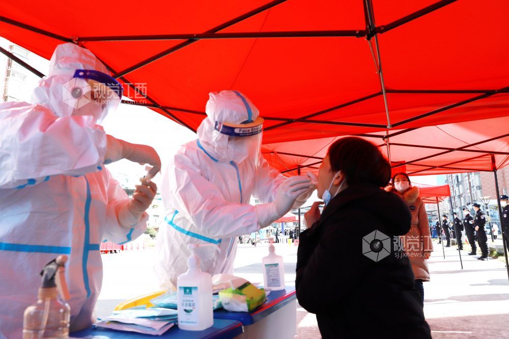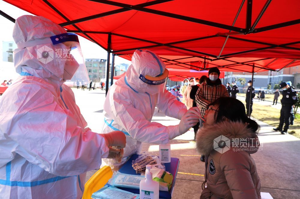 2020年12月31日,医护人员在江西省九江市湖口县举行的新冠肺炎疫情应急核酸检测演练现场对群众进行核酸检测筛查。为有效应对秋冬季节可能出现的新冠肺炎疫情,提高突发公共卫生事件的处置能力,江西省九江市湖口县举行新冠肺炎疫情全员核酸检测应急演练。应急演练现场,采取实人参演、实装操作等方式,按照有关的技术规范和要求进行演练。