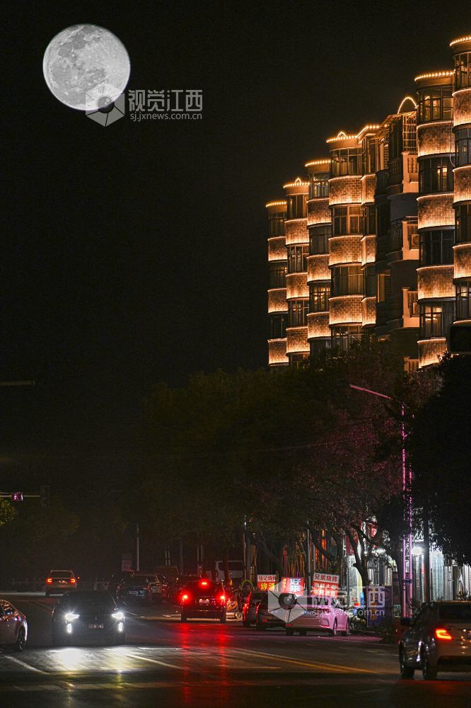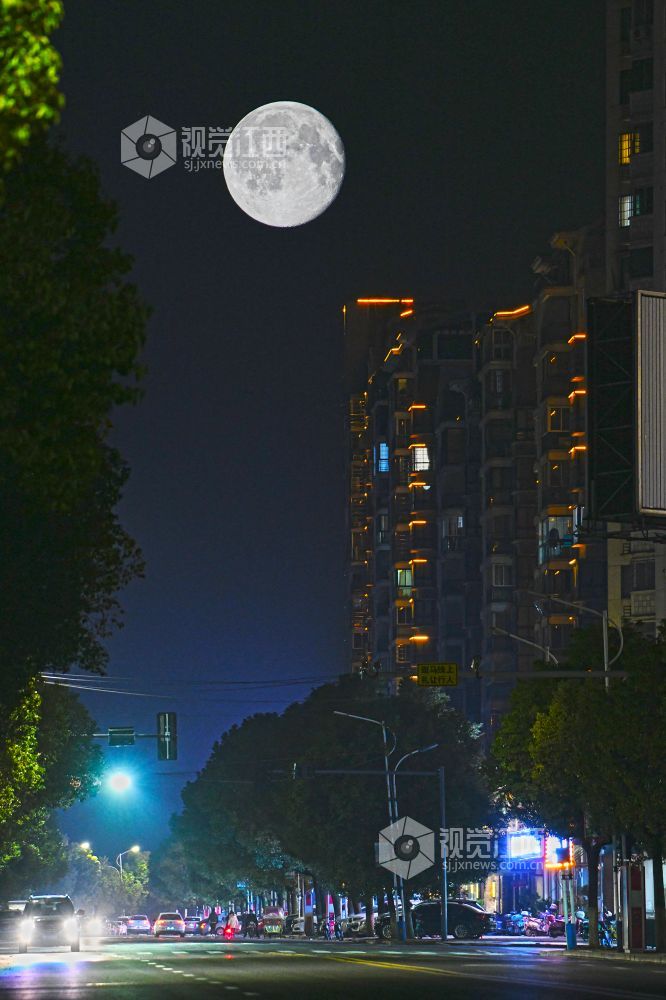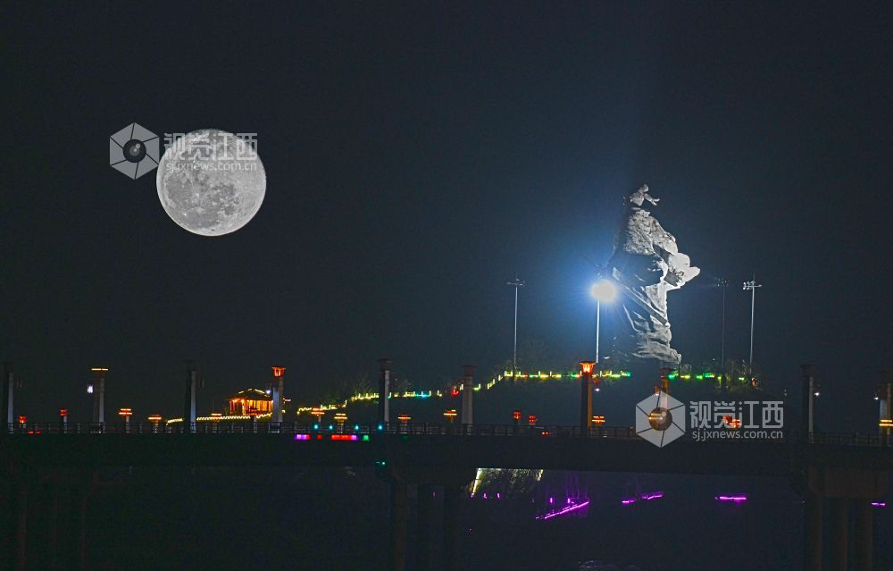 2020年12月31日,农历十一月十七,一轮圆月悬挂在江西省上饶市铅山县河口镇上空,与周边建筑构成美轮美奂的画面。这也是2020年最后一次圆月,2020年即将过去,2021年即将到来。