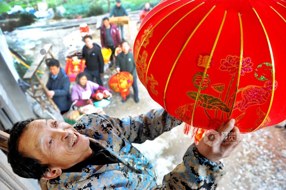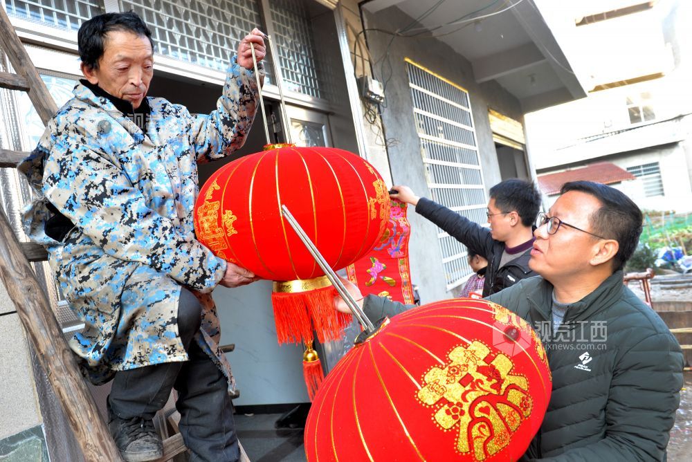 2021年1月2日,江西省上饶市广丰区嵩峰乡十都村贫困户王春狗在政府的帮扶下,在自己的新家门口挂起大红灯笼,喜迎新年。