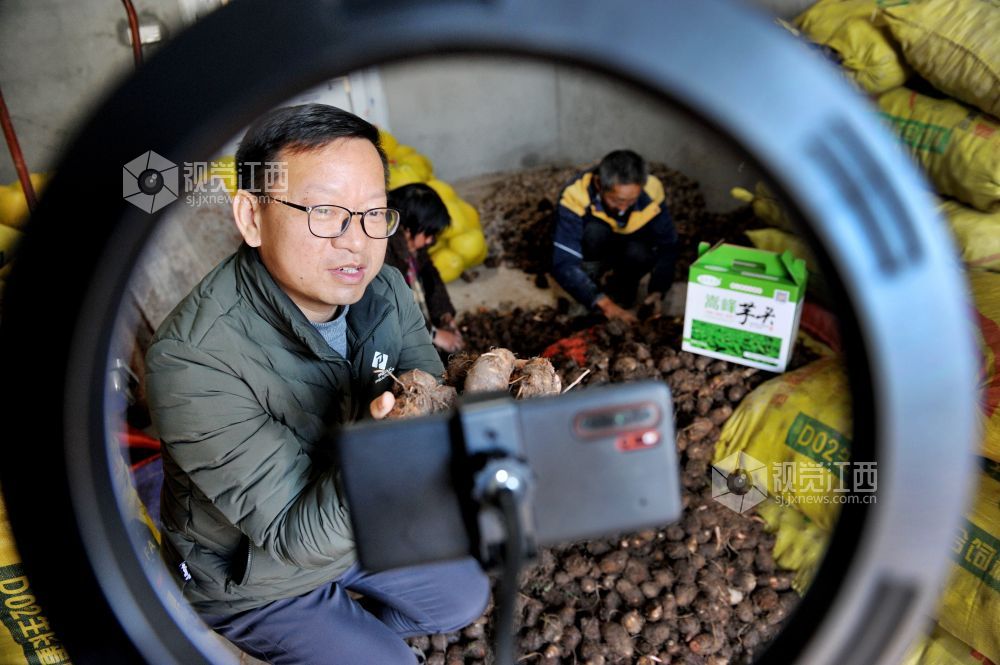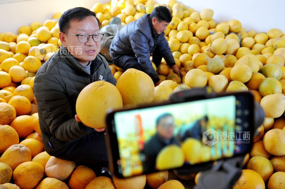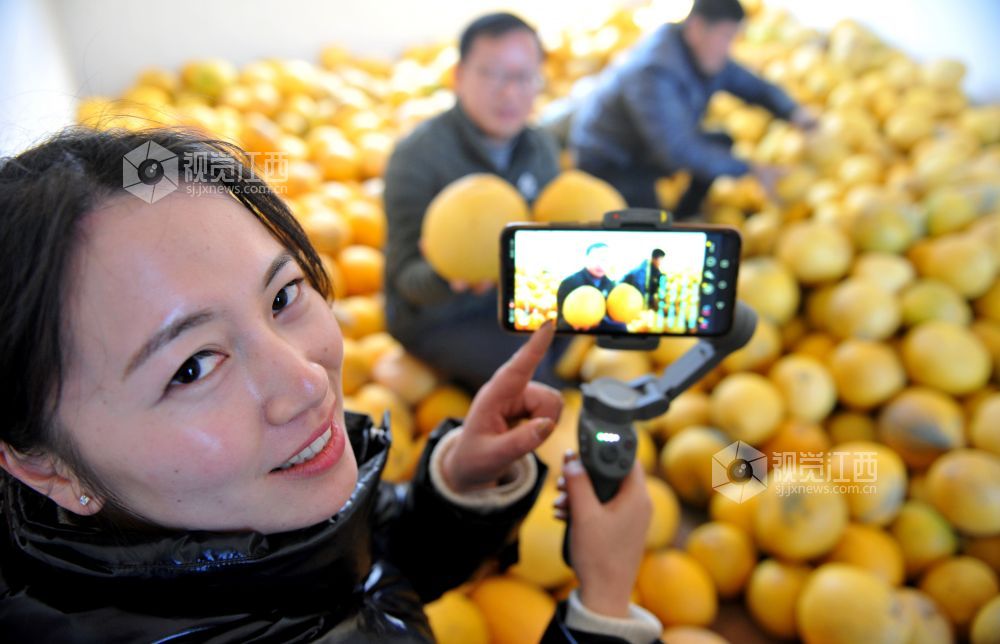 2021年1月2日,江西省上饶市广丰区嵩峰乡党员干部通过手机网络直播,现场叫卖家乡特产马家柚。