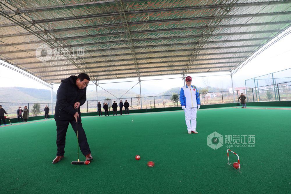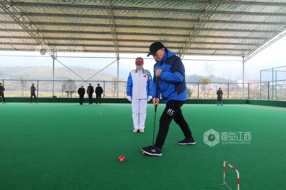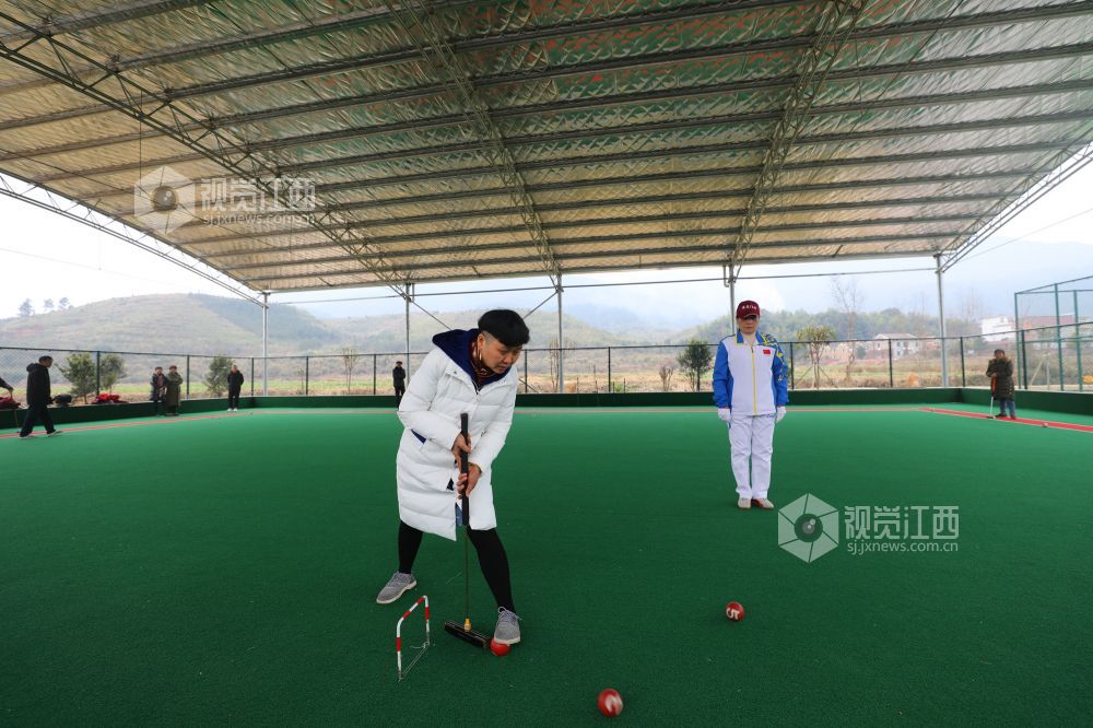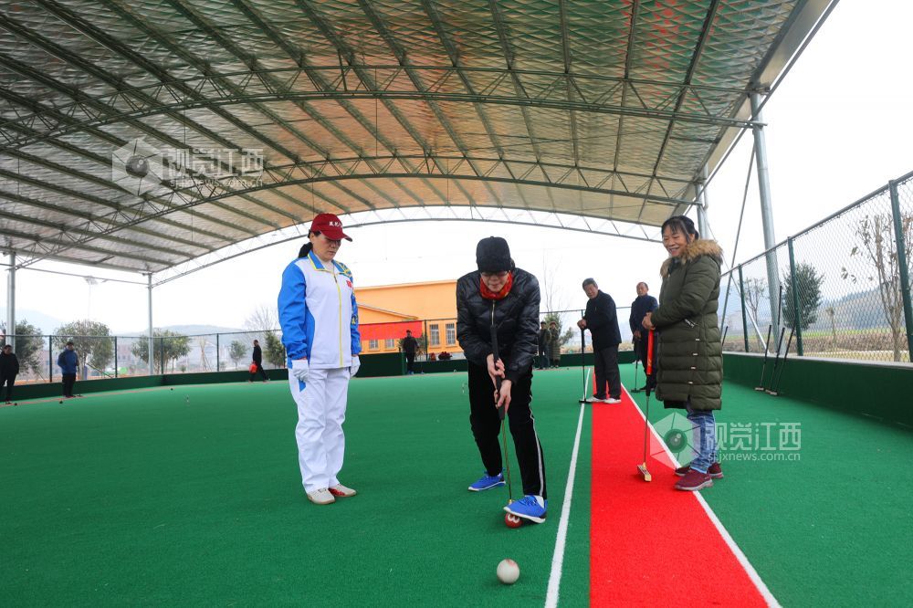 1月5日,江西省莲花县荷塘乡井下村,老人们正在新建成的风雨门球场进行比赛。该门球场由荷塘乡政府投入近30万元建成,占地面积约600平方米,具有遮阳防雨、耐磨度高等特点,是莲花县首个乡镇标准化人工草坪风雨门球场。该门球场对改善该乡老年体育健身条件,丰富老年人文化生活,将发挥积极的作用。据悉,该乡还投入50万元建起了足球场。