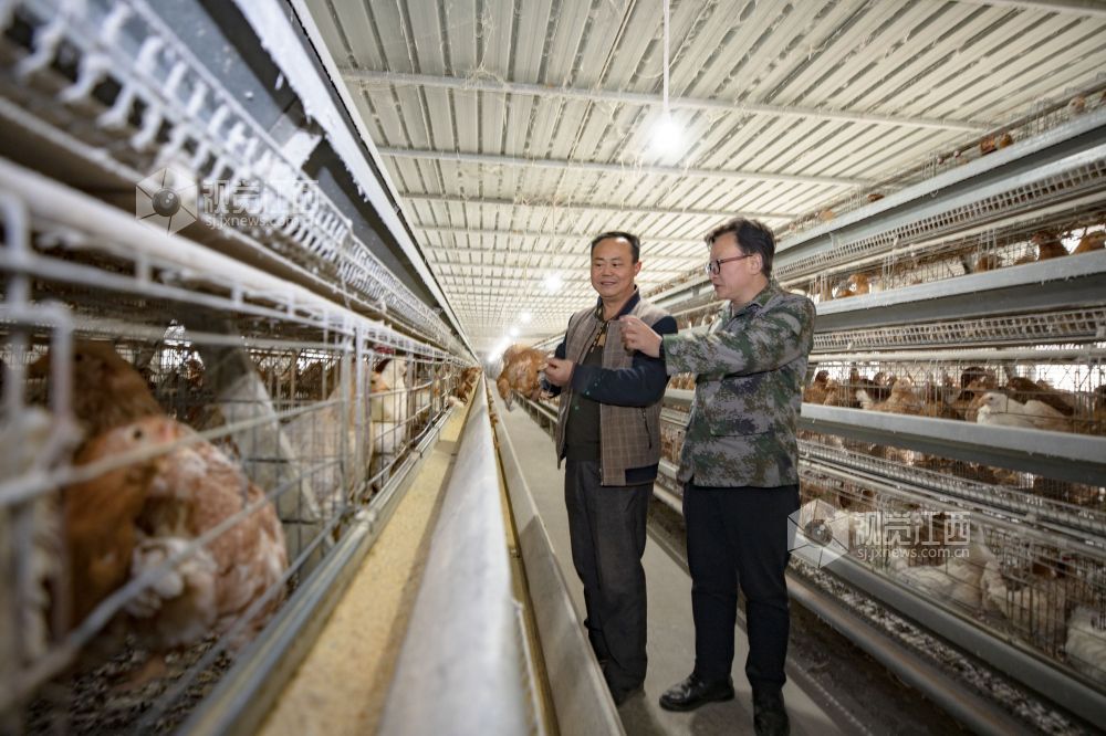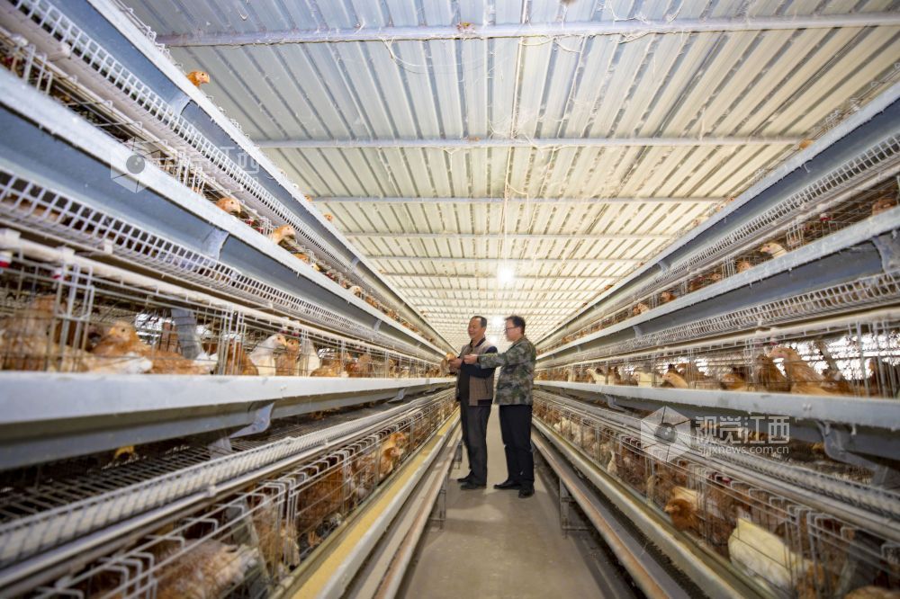 2021年1月5日,江西庐山市利康家庭农场,扶贫干部李然与扶贫产业带头人胡小红在观察蛋鸡生长情况,争取春节期间向市场供应新鲜鸡蛋。 利康家庭农场是一个有3万多羽饲养规模,采用国内先进的阶梯式育雏育成式产蛋自动化生产设备的企业,吸纳建档立卡贫困户在农场务工,惠及贫困户人口21人。当地政府采取“养殖大户+贫困户”的模式把各类家庭农场、养殖基地转变成为扶贫车间,有效解决贫困人口就业问题,同时形成产业规模带动乡村振兴。