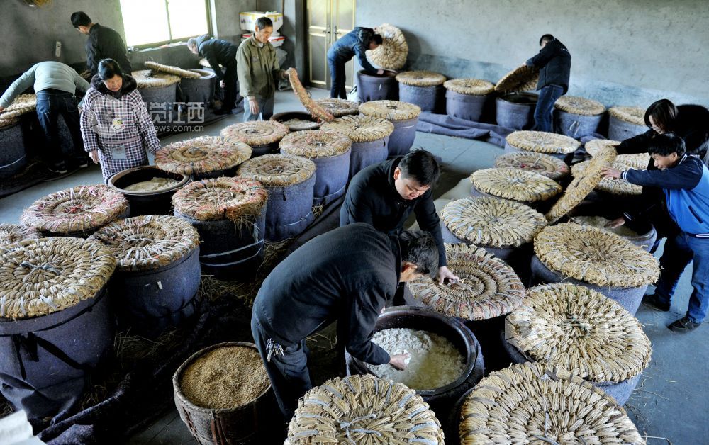 当天,江西省德兴市昄大乡定坑村农家酒厂蒸出了2021年第一锅等待发酵酿酒的高粱酒糟。据了解,运用传统古法酿酒工艺的定坑村农家酒厂是该乡一家扶贫合作企业。昄大乡地处偏远山区,清澈的山泉水给当地懂得酿酒技术的有志人士一个家门口创业的良机。他们经过多年打拼富裕起来后,不忘初心,最大限度吸纳当地一些有劳力、有意愿的贫困户前来务工赚钱,同时在技术上给予指导,帮助他们脱贫致富。