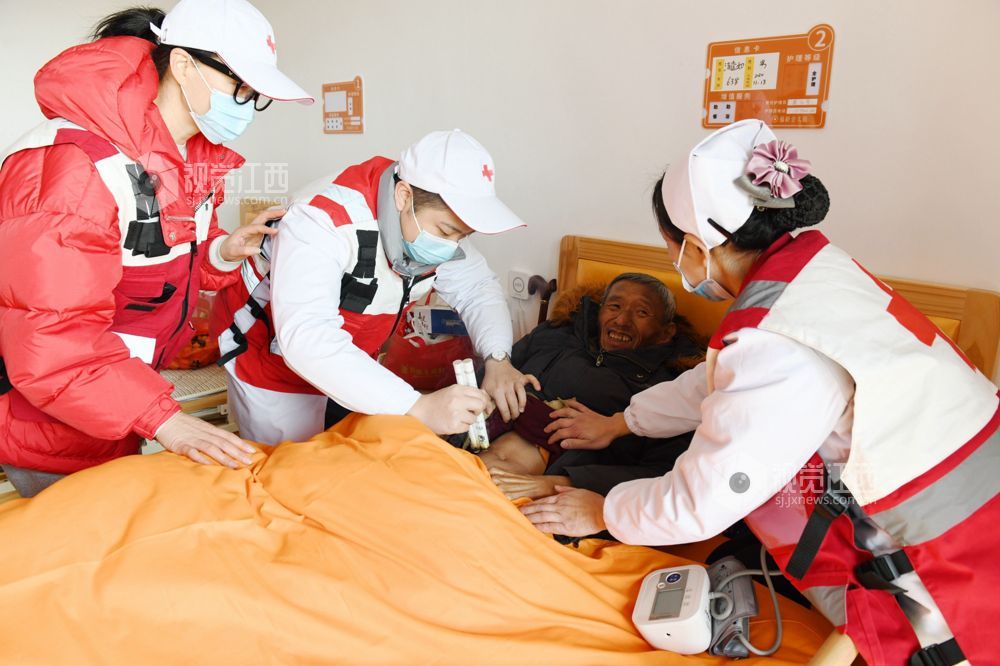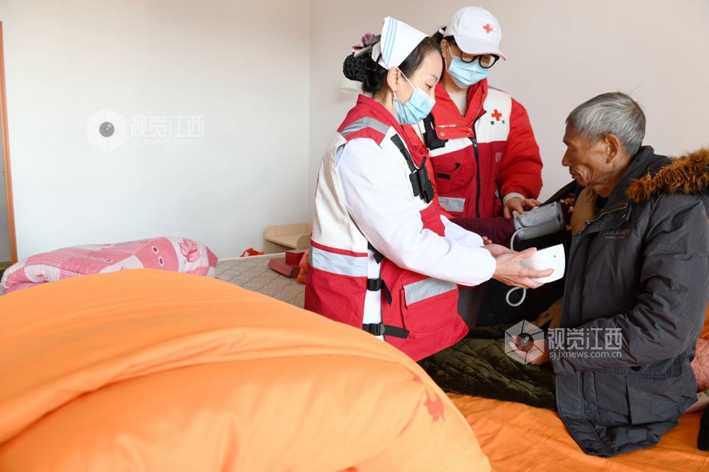 当日,江西省抚州市南丰县红十字会老年介护志愿者服务队的志愿者走进该县养老服务中心开展情暖寒冬敬老活动。志愿者为老人们送上了精彩的文艺表演,并免费为老人们义诊测量血压、进行艾灸调理,让老人们在寒冷的冬季倍感温暖。